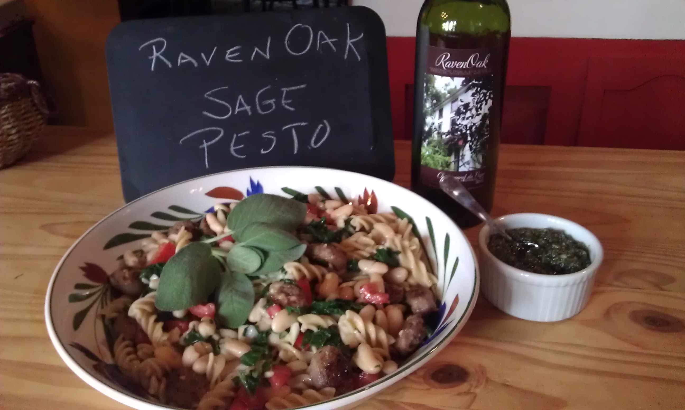 Chard, Fusilli, Canillini and Sausage Salad with Sage Pesto