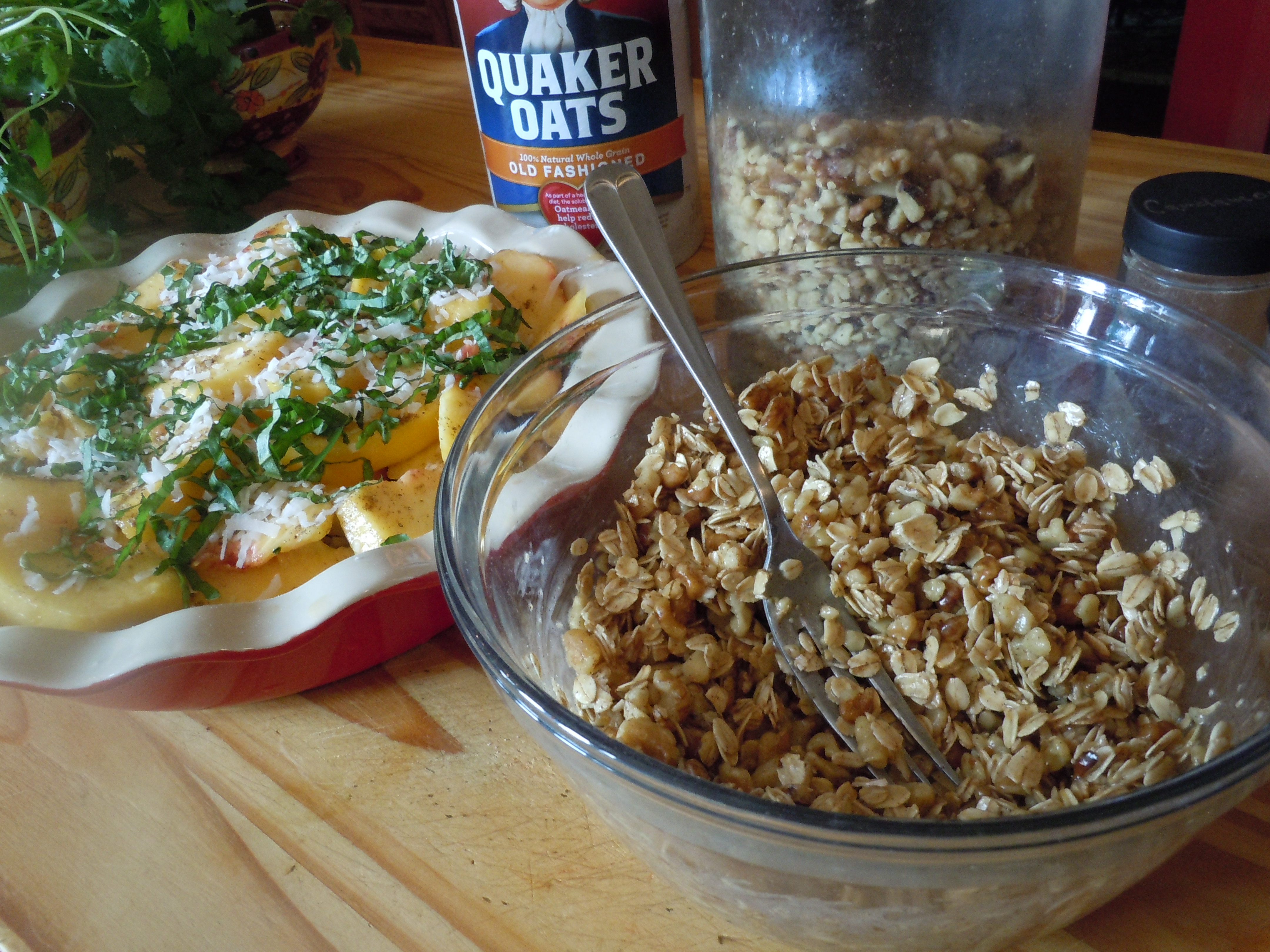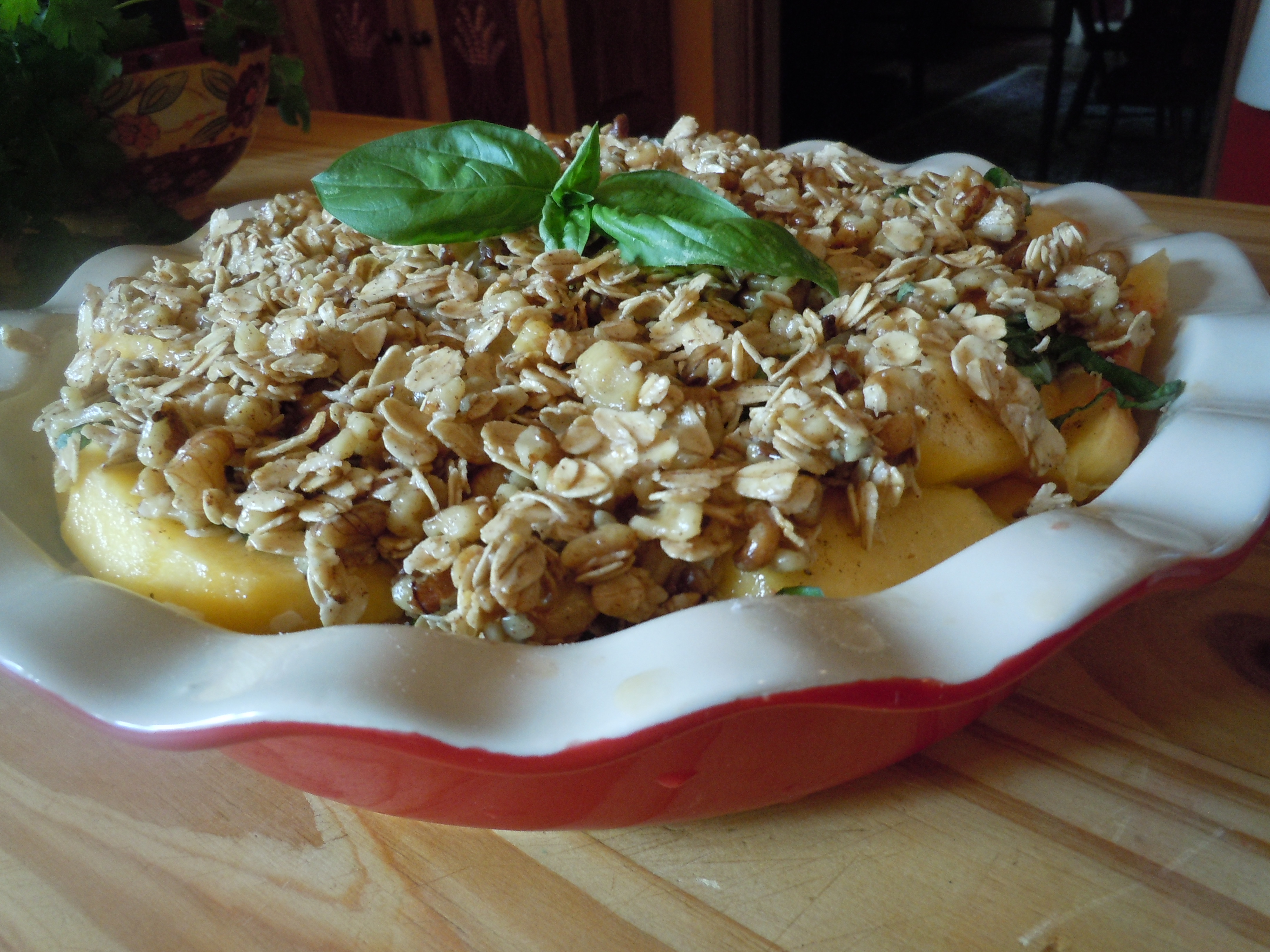 Peach Coconut and Basil Crumble (serves 8)