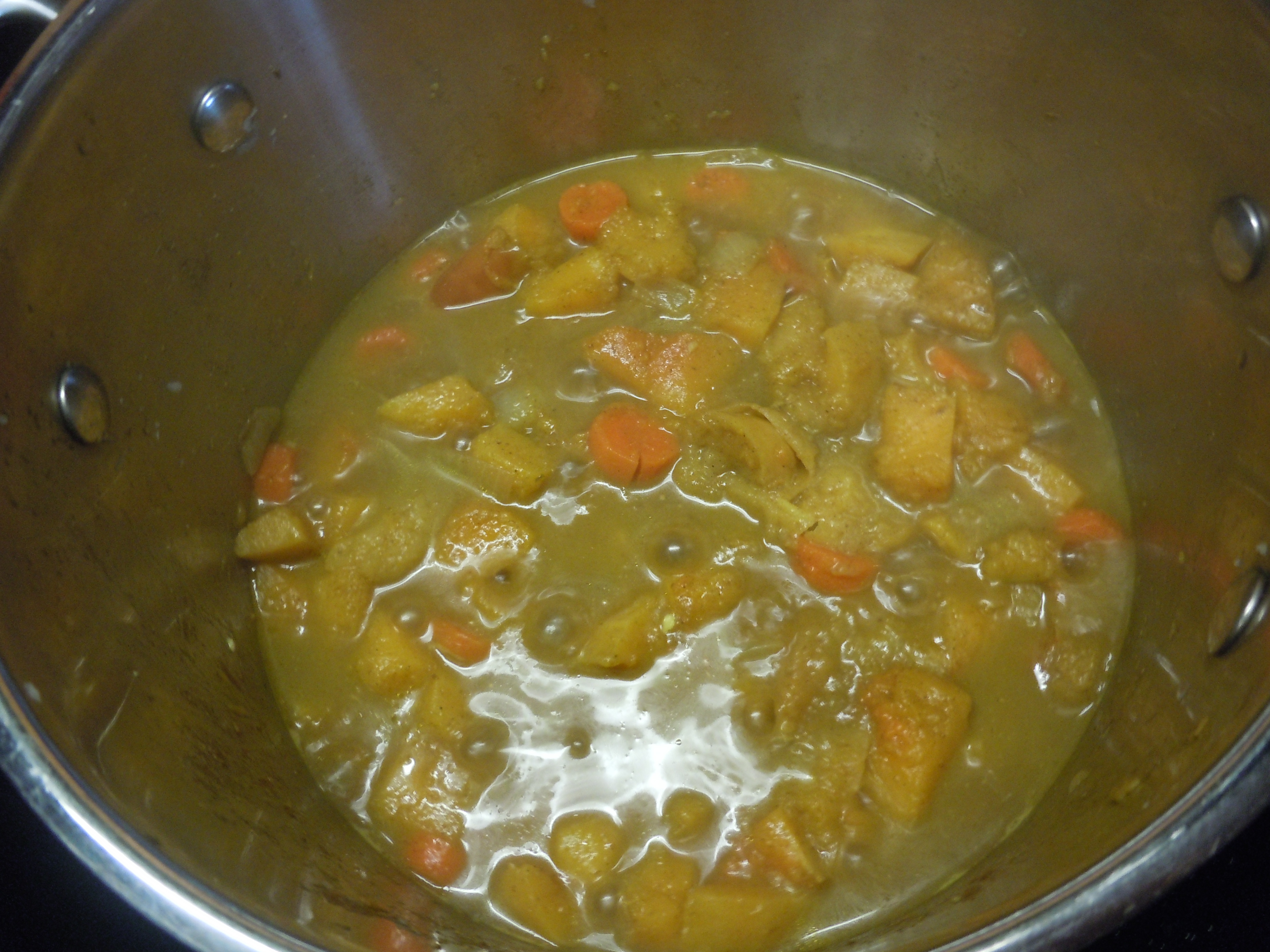 Currried Apple, Carrot, and Butternut Squash Soup (serves 8 as first course)