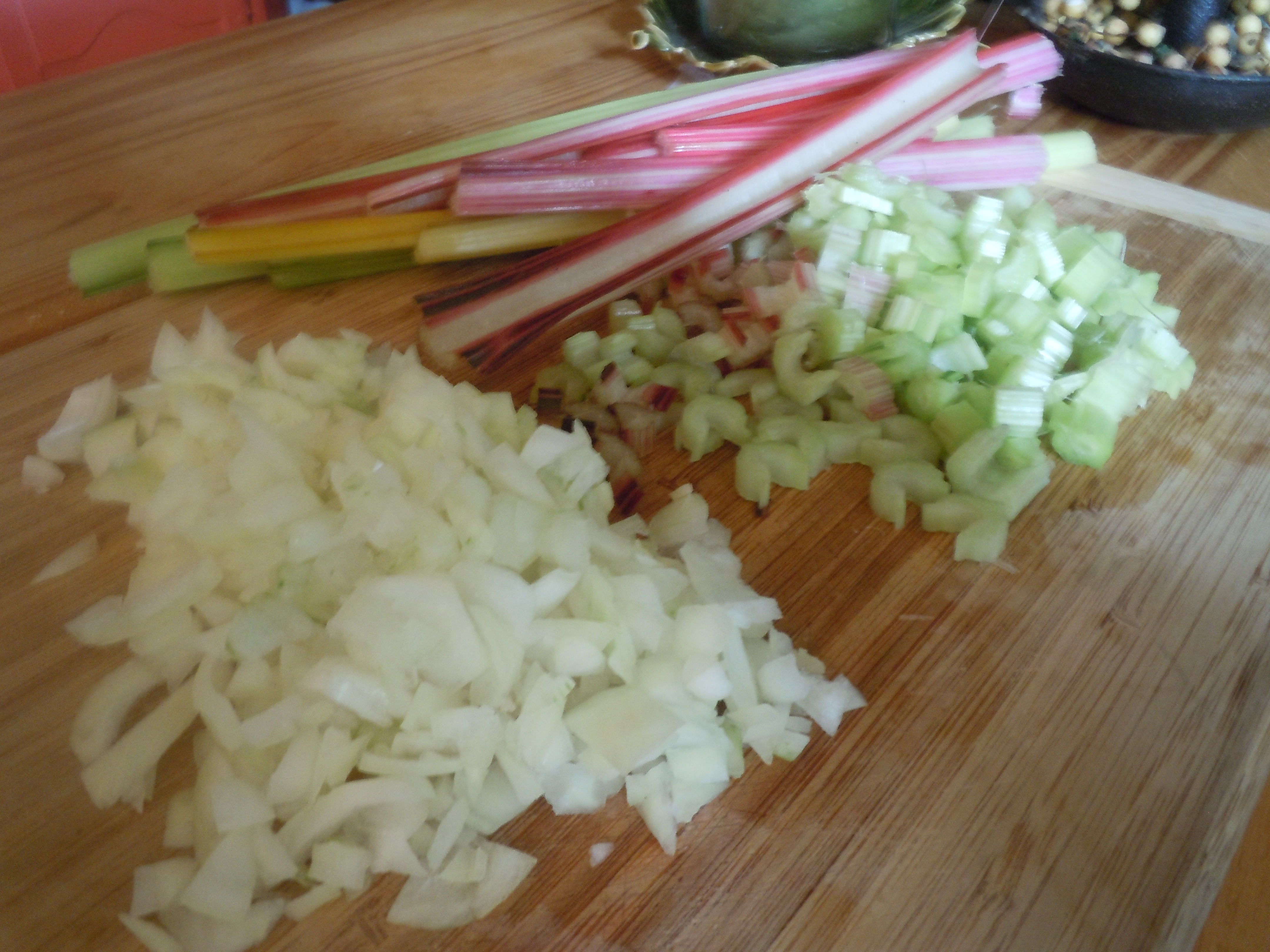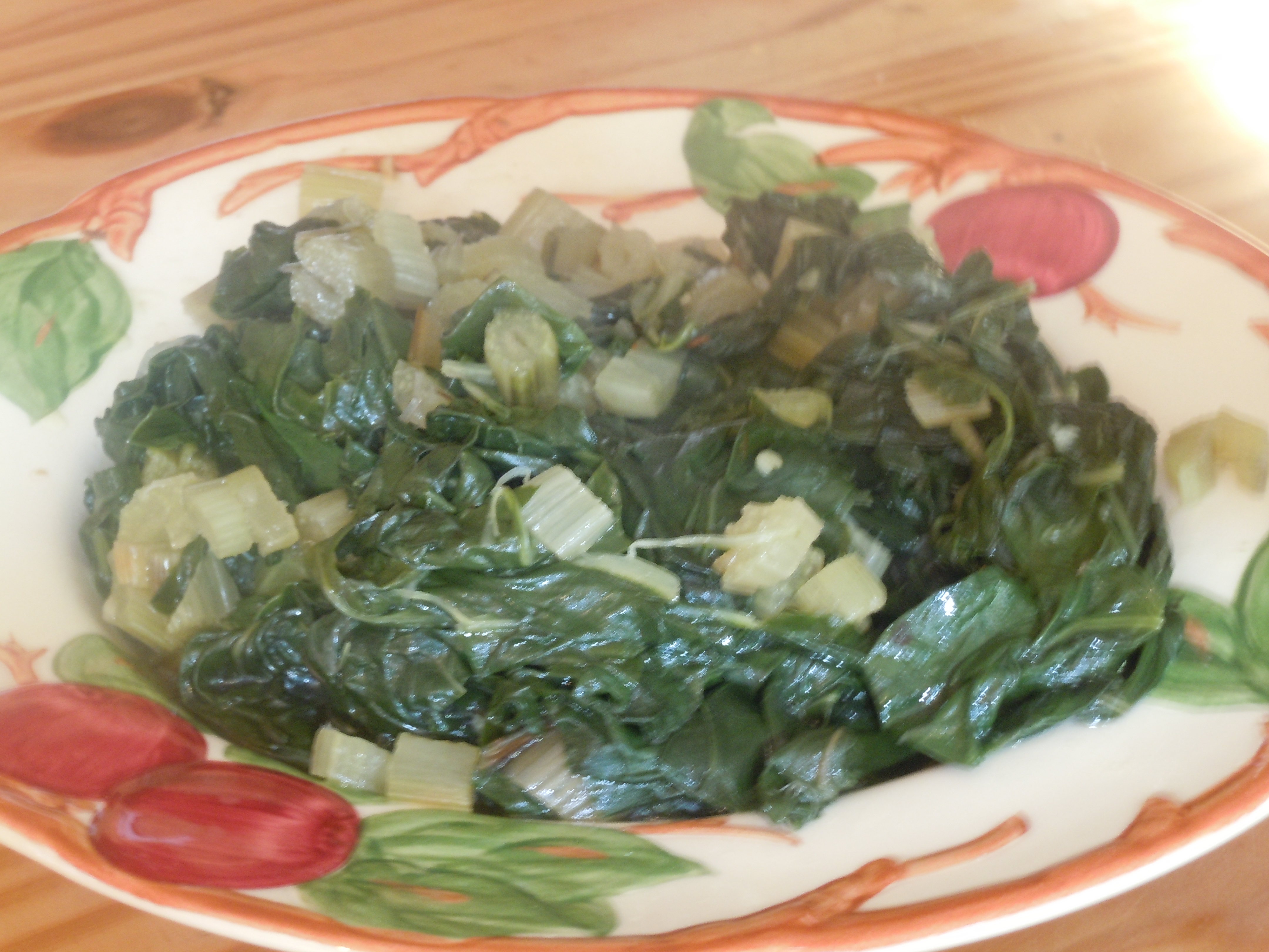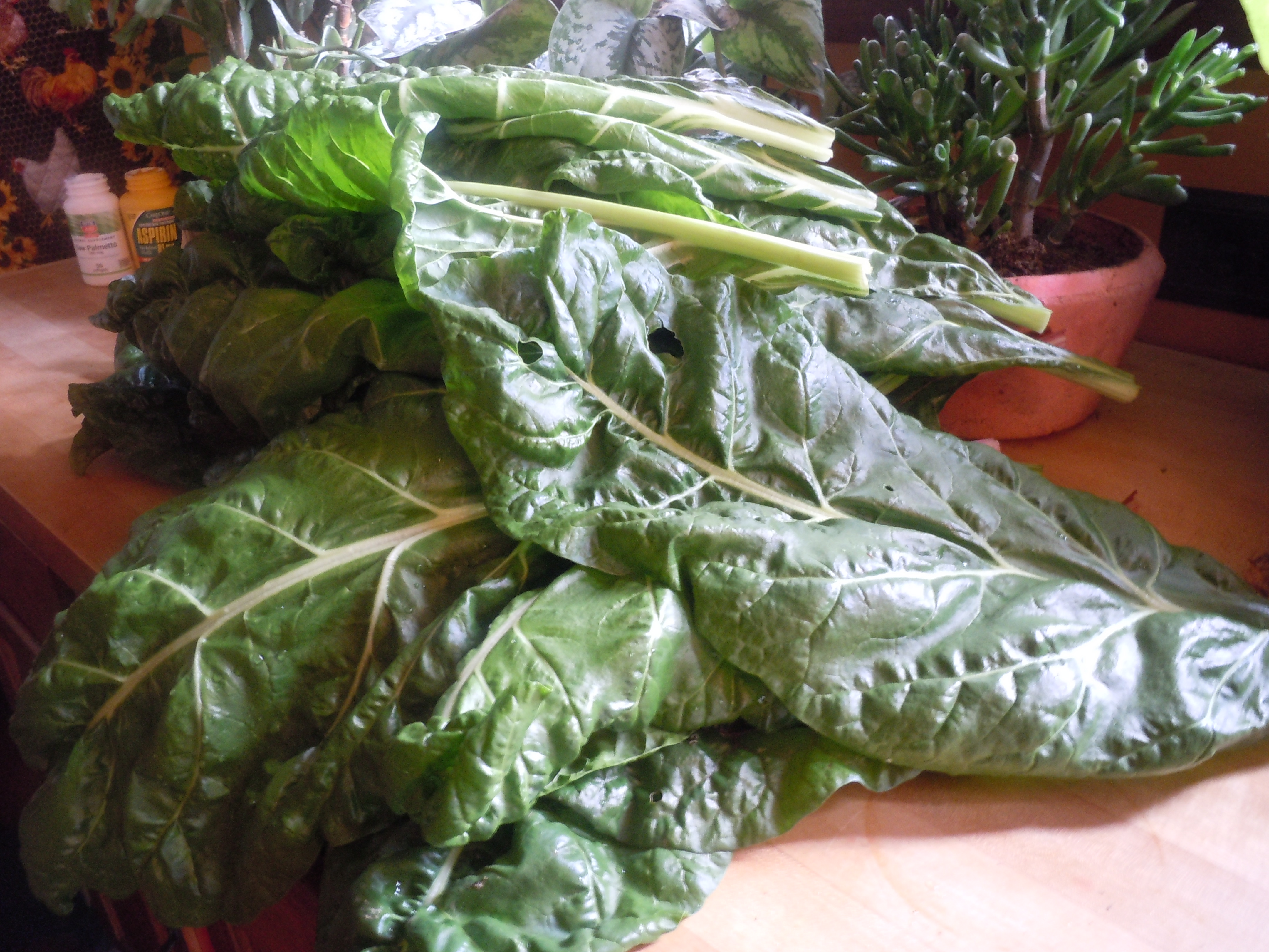 Heavy rain and dropping temperatures last night meant that we had to harvest a huge amount of red, yellow and green swiss chard today. This recipe will serve 4-6. What we harvested today would be more like 15-20. But it does freeze, so all is well. To make a vegetarian main dish, add some cannellini or garbanzo beans, and toss with pasta. ~ Glyn