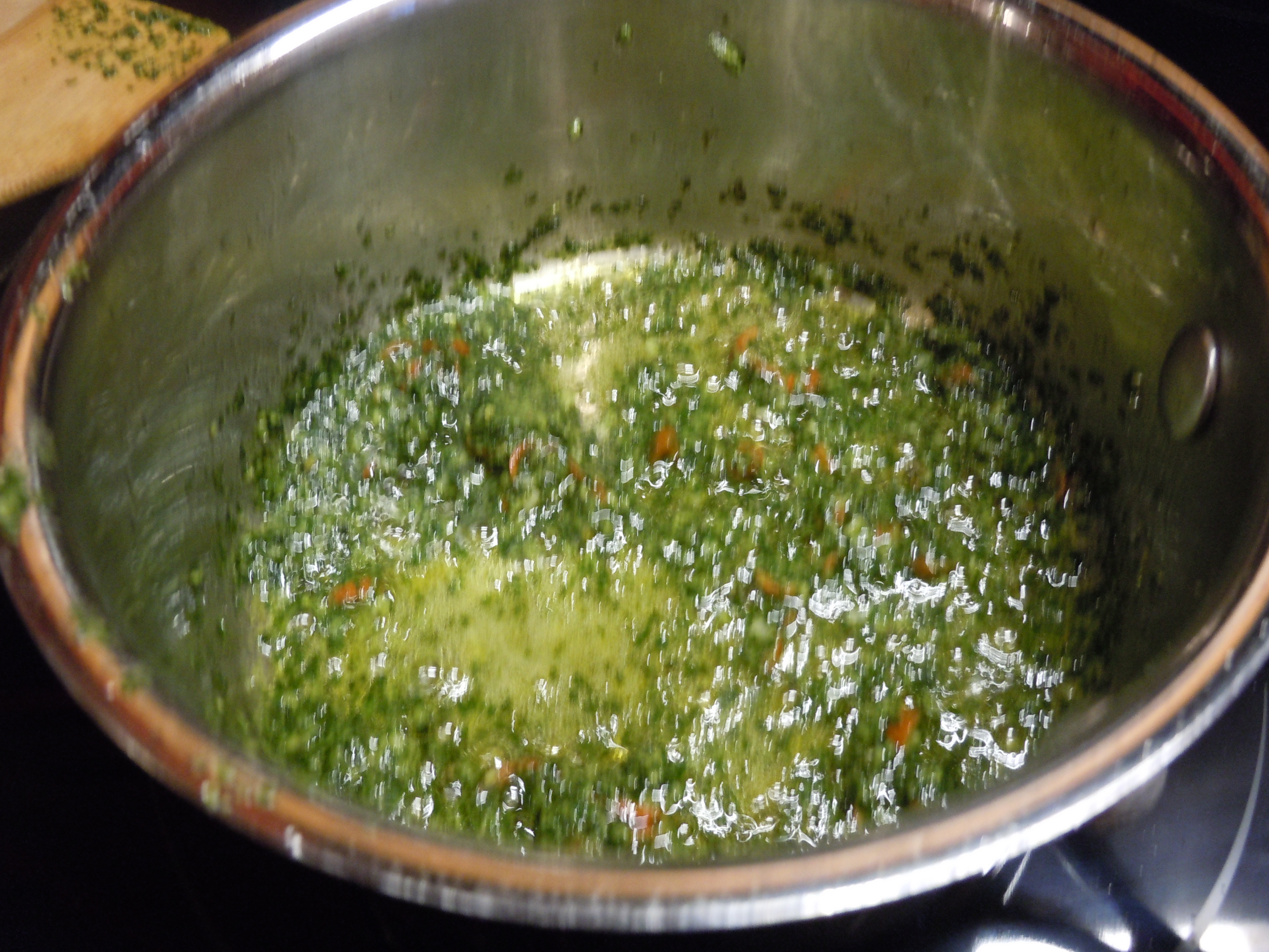 It is nearly November and comfort food is the order of the day. But sometimes you want to enjoy a comforting meal with the bounty that you preserved from the summer harvest. So, if you have pesto in the freezer in cubes or in a jar from the Italian section of the market, this meal requires 5 ingredients. We made it tonight in under 15 minutes and it was fabulous! ~ Glyn