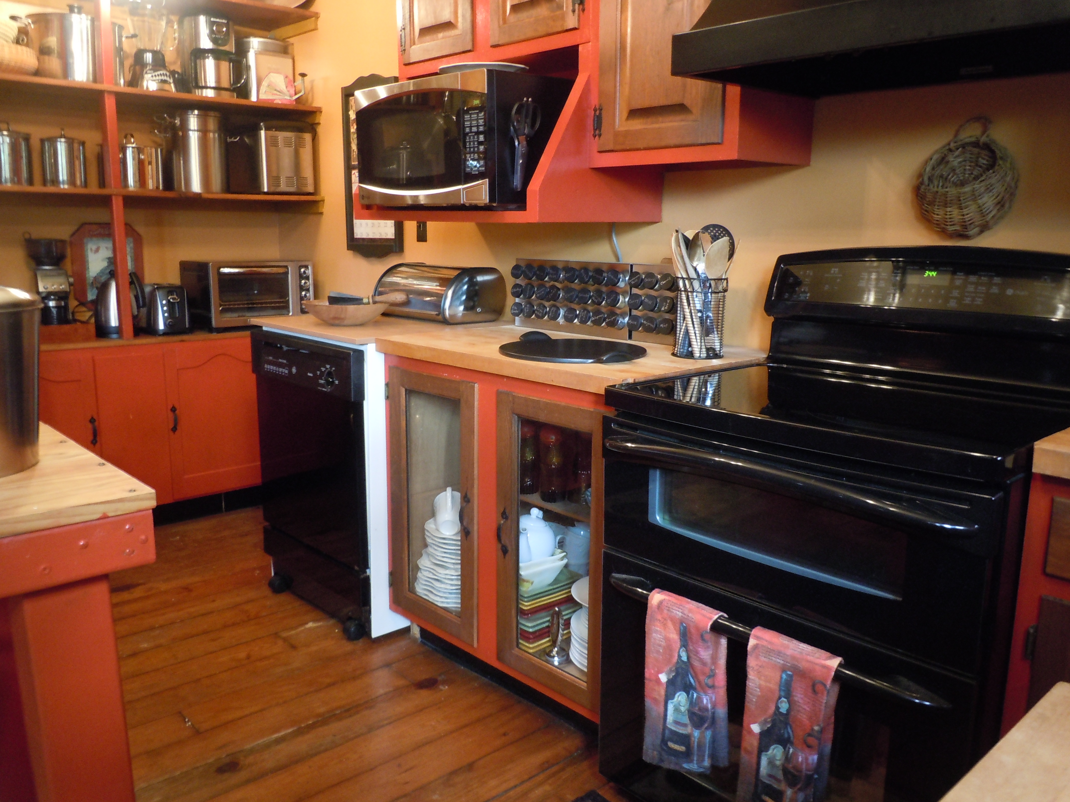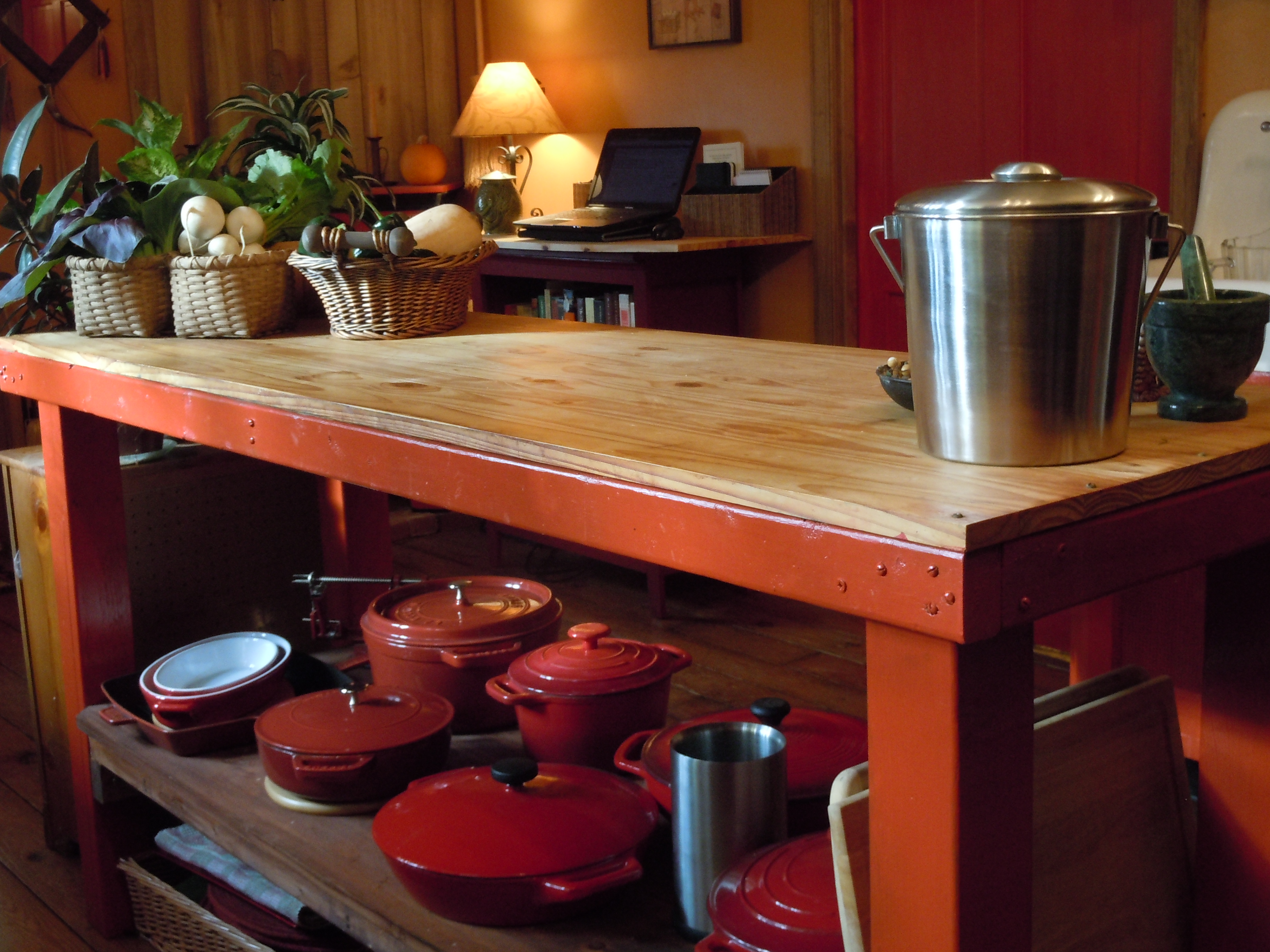 Then you realize that you can’t possibly cook and photograph in this environment, so you have a wall moved and a pocket door put in. Then you have to paint so why not change the colors? And the lighting? Good grief — the house is 18th century, but the lighting doesn’t have to be! Eventually you discover that you REALLY need a more accurate blogosphere image, a new name for the site and a different web domain. Most of all, you need a designated stand-up blogging station — which requires hours of IT work, and multiple trips the lighting store, Home Depot and the unassembled furniture shop. Not to mention annoying the Schnoodle and using up all your “honey-do chips” in one weekend. (Thank you, Will, for building an awesome blogging station to my exact height requirements!!)