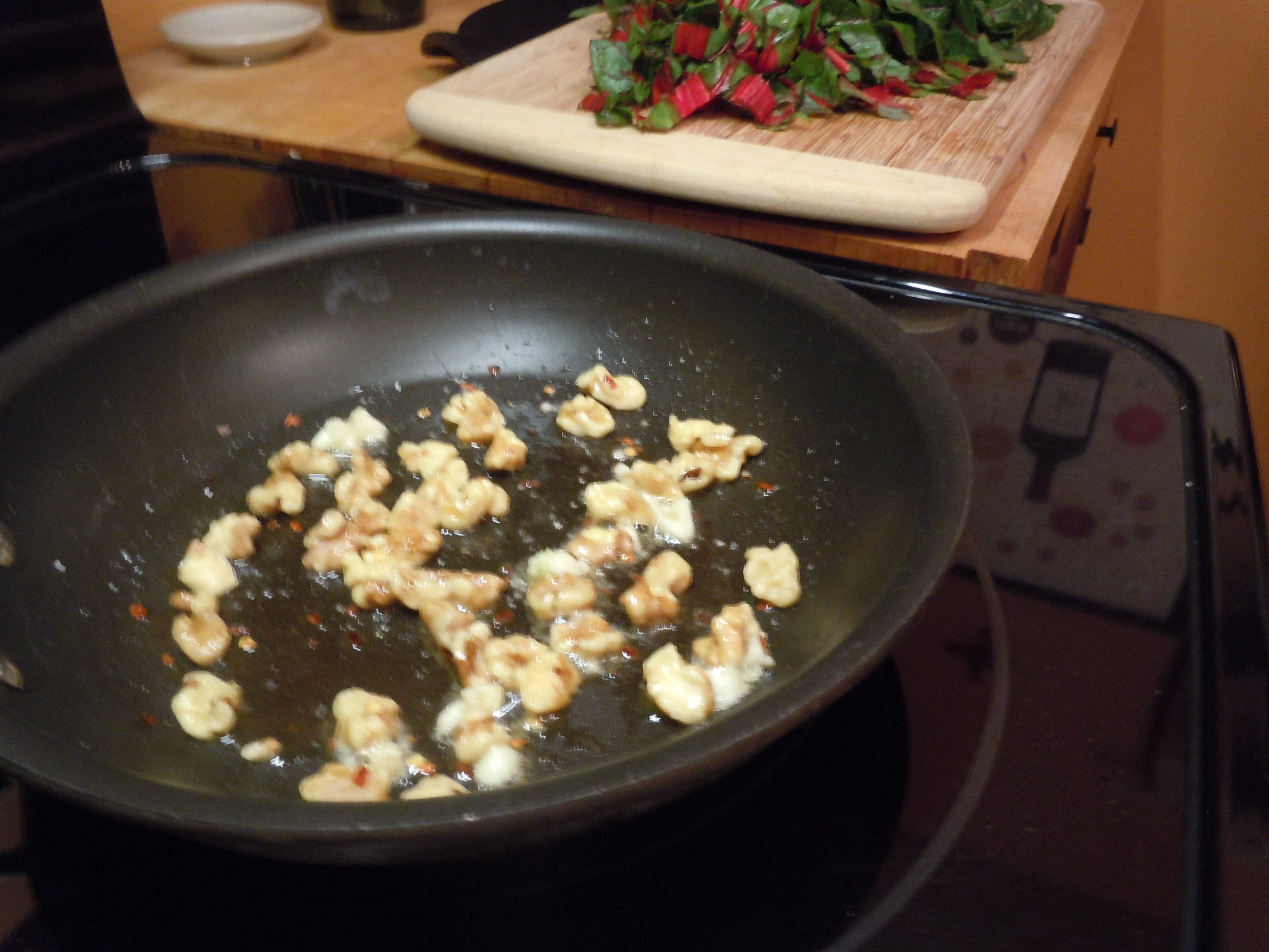 Saute the chard, adding more walnut oil if needed.