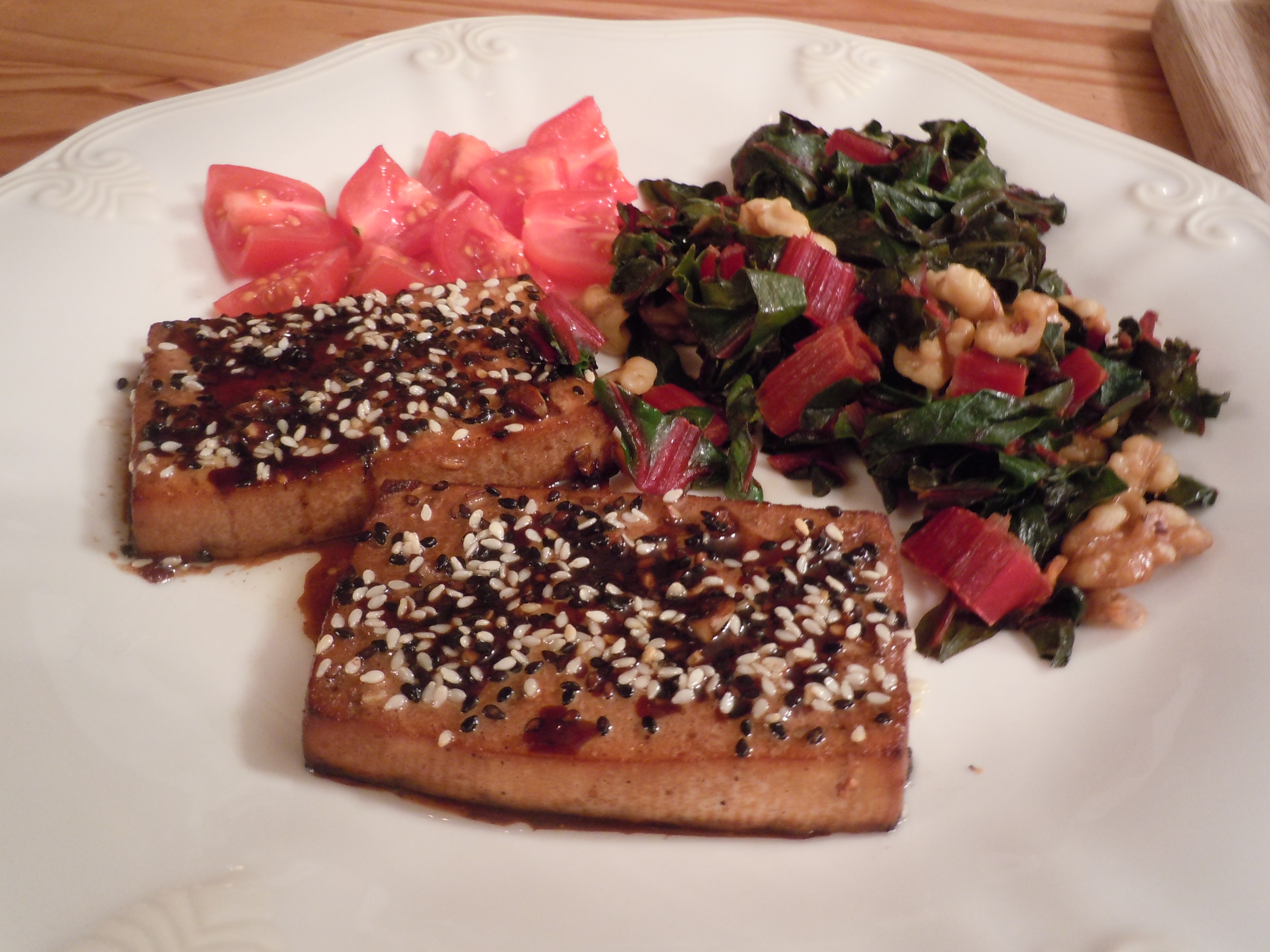 3 thoughts on “Day 3 GVFMBB Baked Sesame Tofu with Red Chard and Walnuts