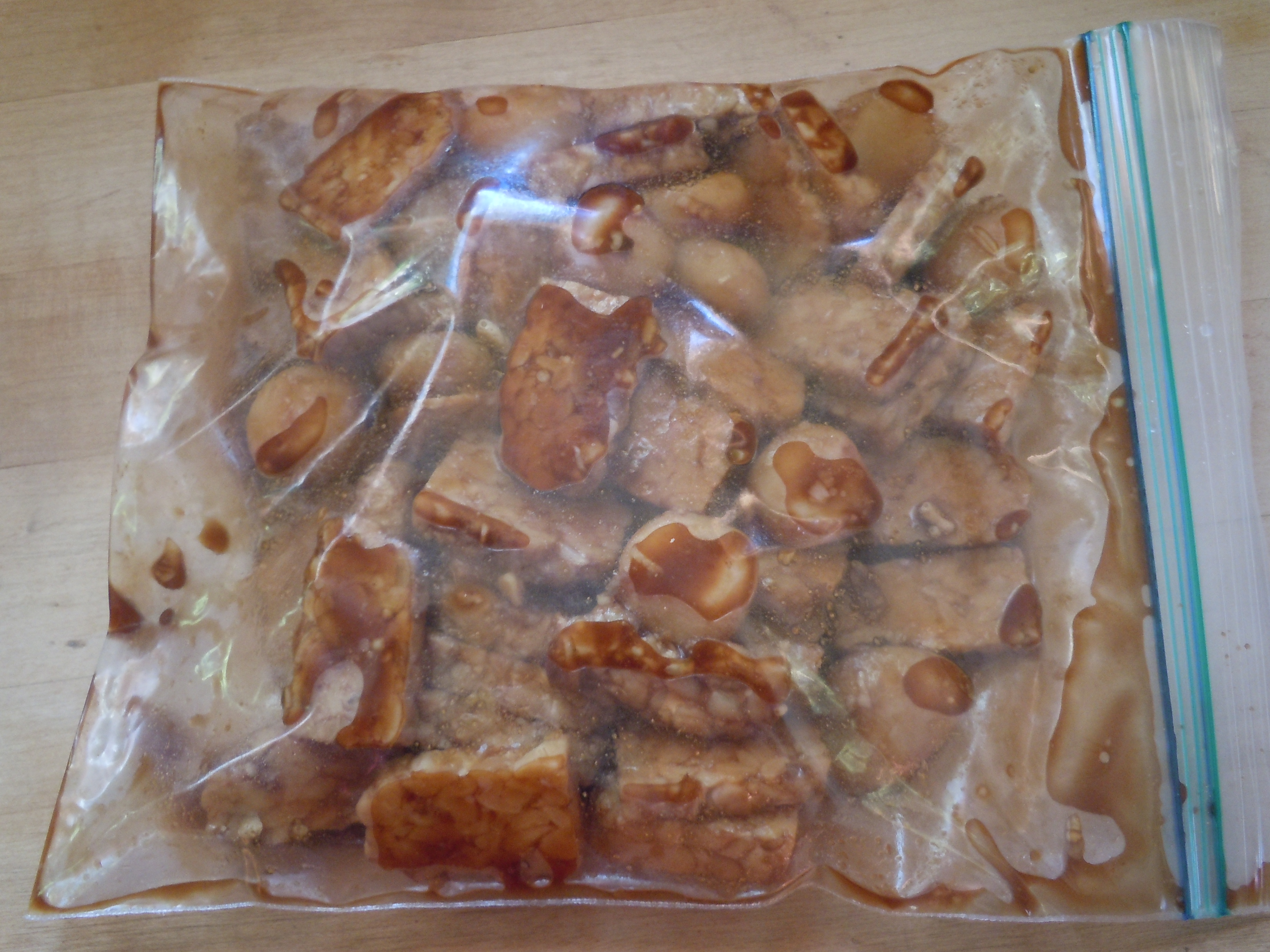 Marinate at room temperature the tempeh and water chestnuts for at least one hour in ¼ c soy sauce
