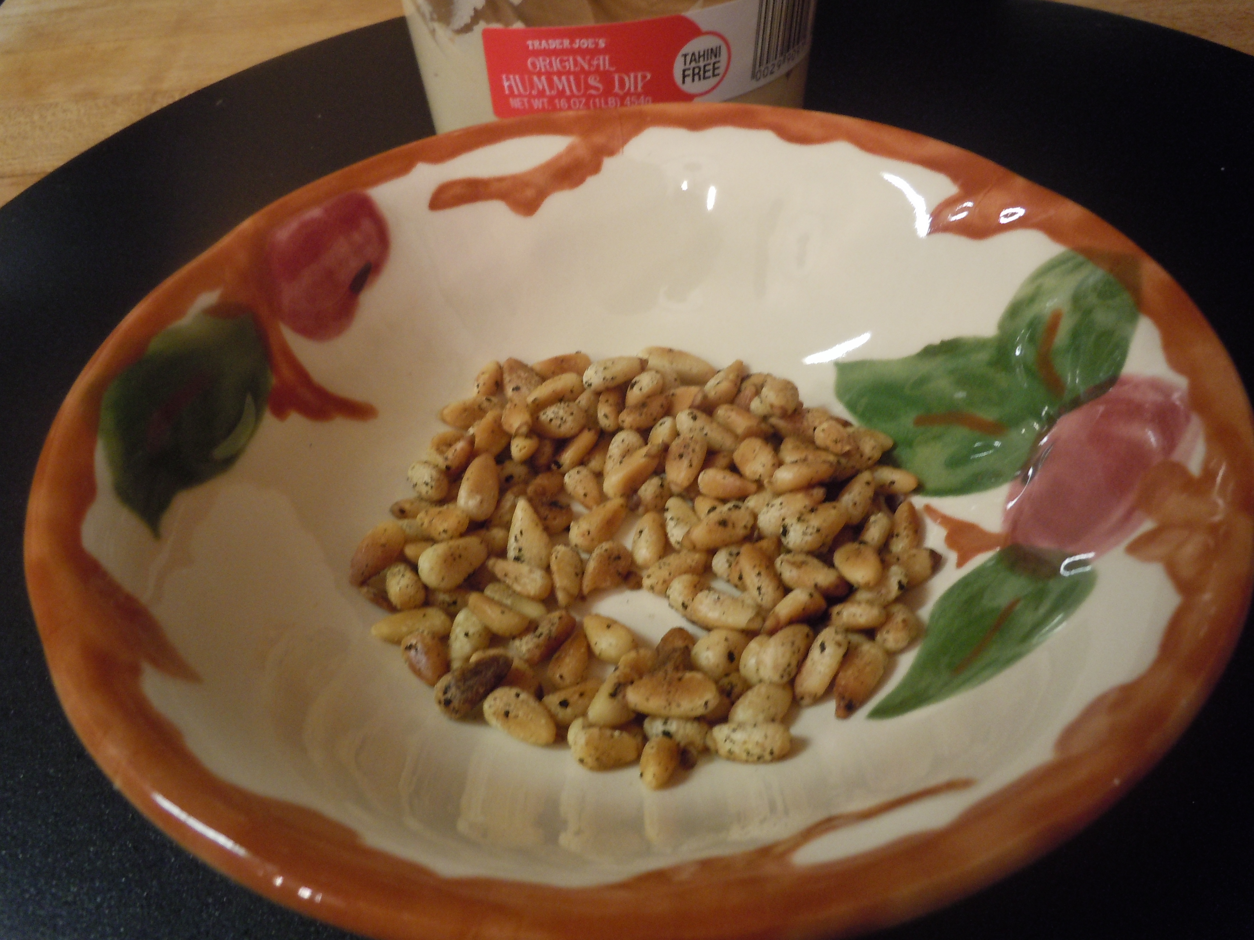 Garnish with the toasted pine nuts. Serve with an arugula salad.