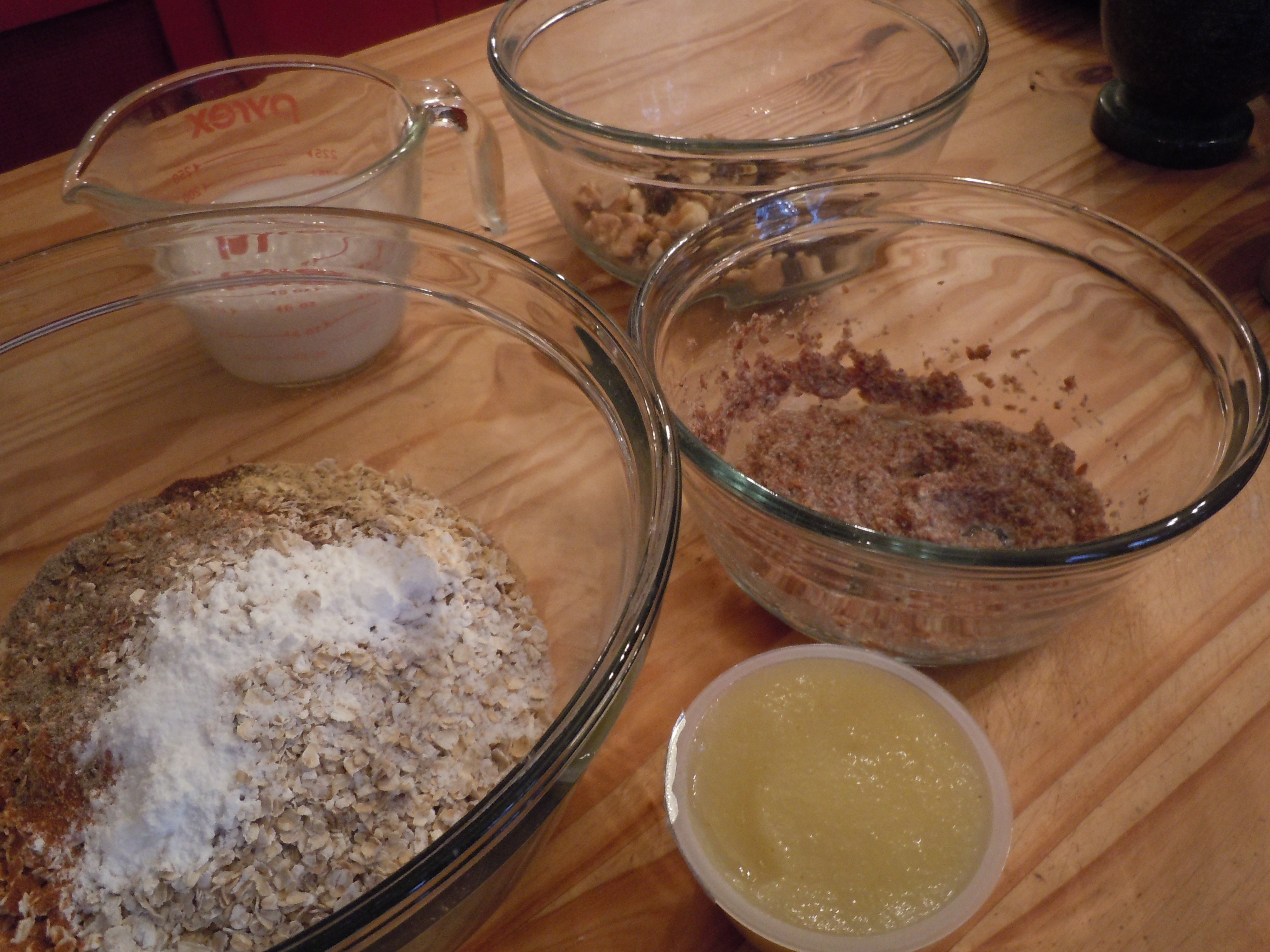 These are my first attempt at vegan baking. I have been doing gluten-free sugar-free cooking for years, but this is a very different endeavor. Without gluten, sweeteners, eggs or dairy, I am feeling rather challenged, but here we go. I am using applesauce instead of oil and flaxseed meal instead of eggs. And please note that these are unsweetened. They smell heavenly but didn’t rise very much, hence the name “biscuits” rather than muffins – at least until I get that part worked out! Blessings of a snowy day ~ Glyn