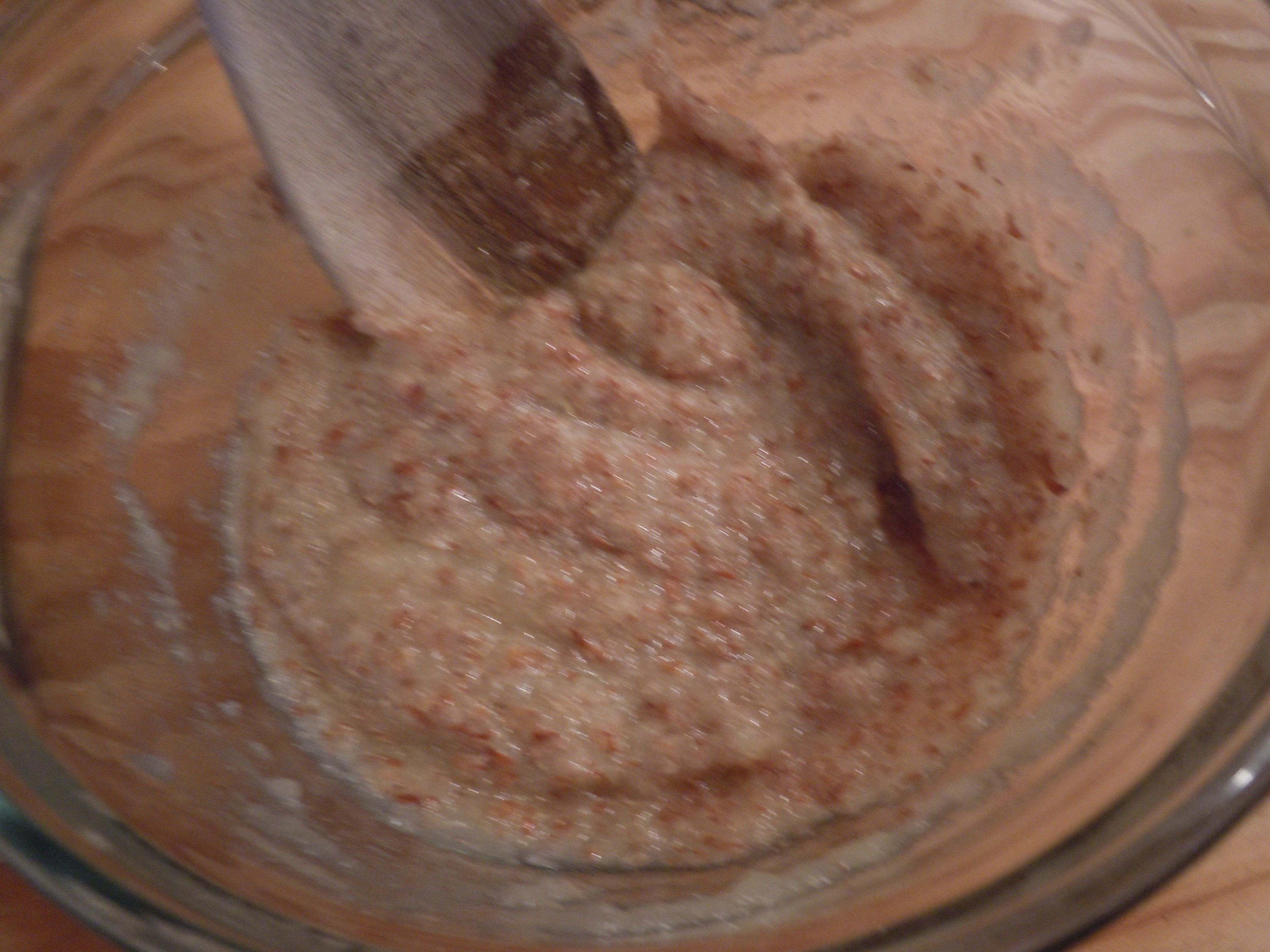 Mix the flax seed and water together. Stir in the applesauce and the almond milk.