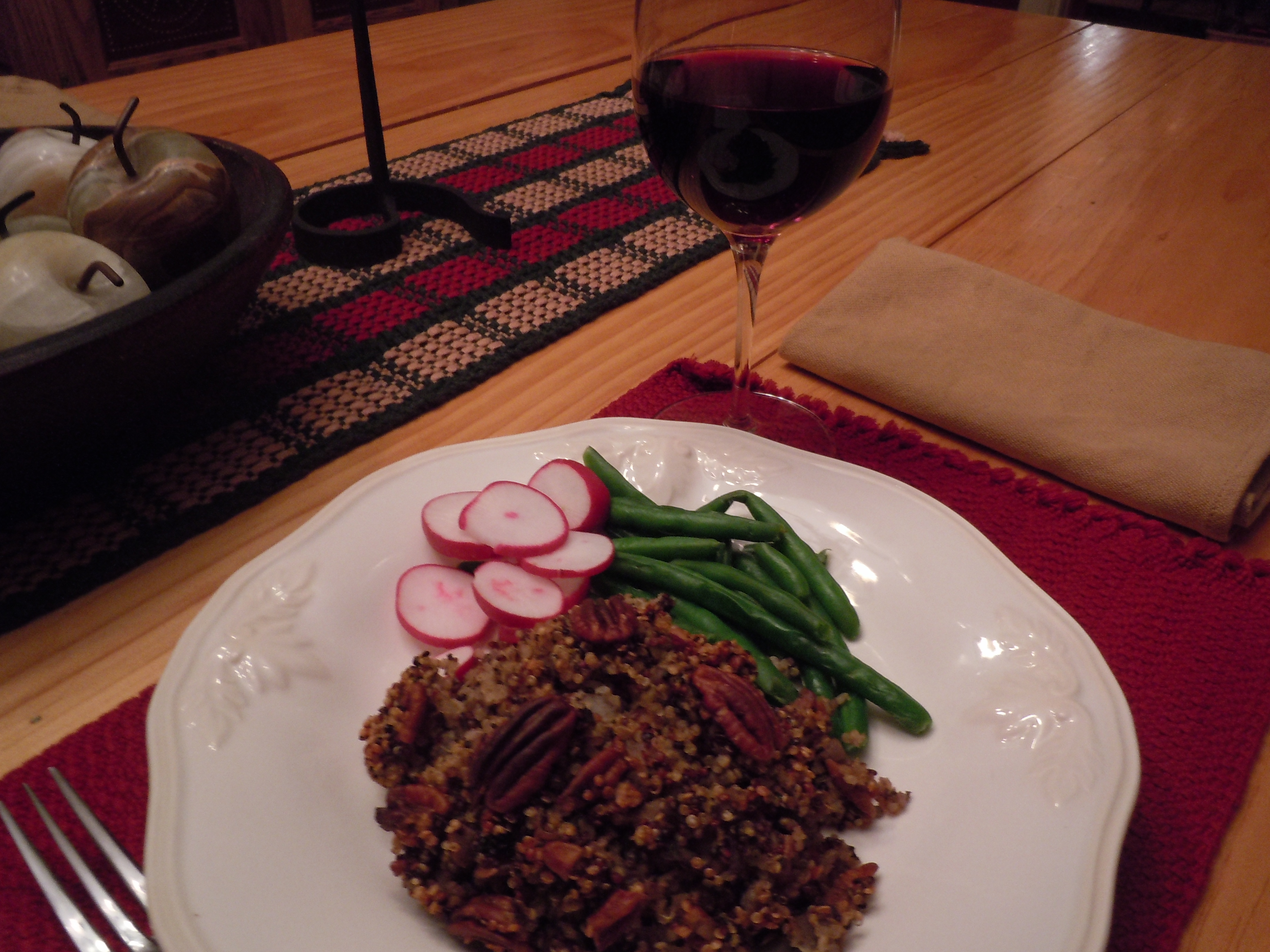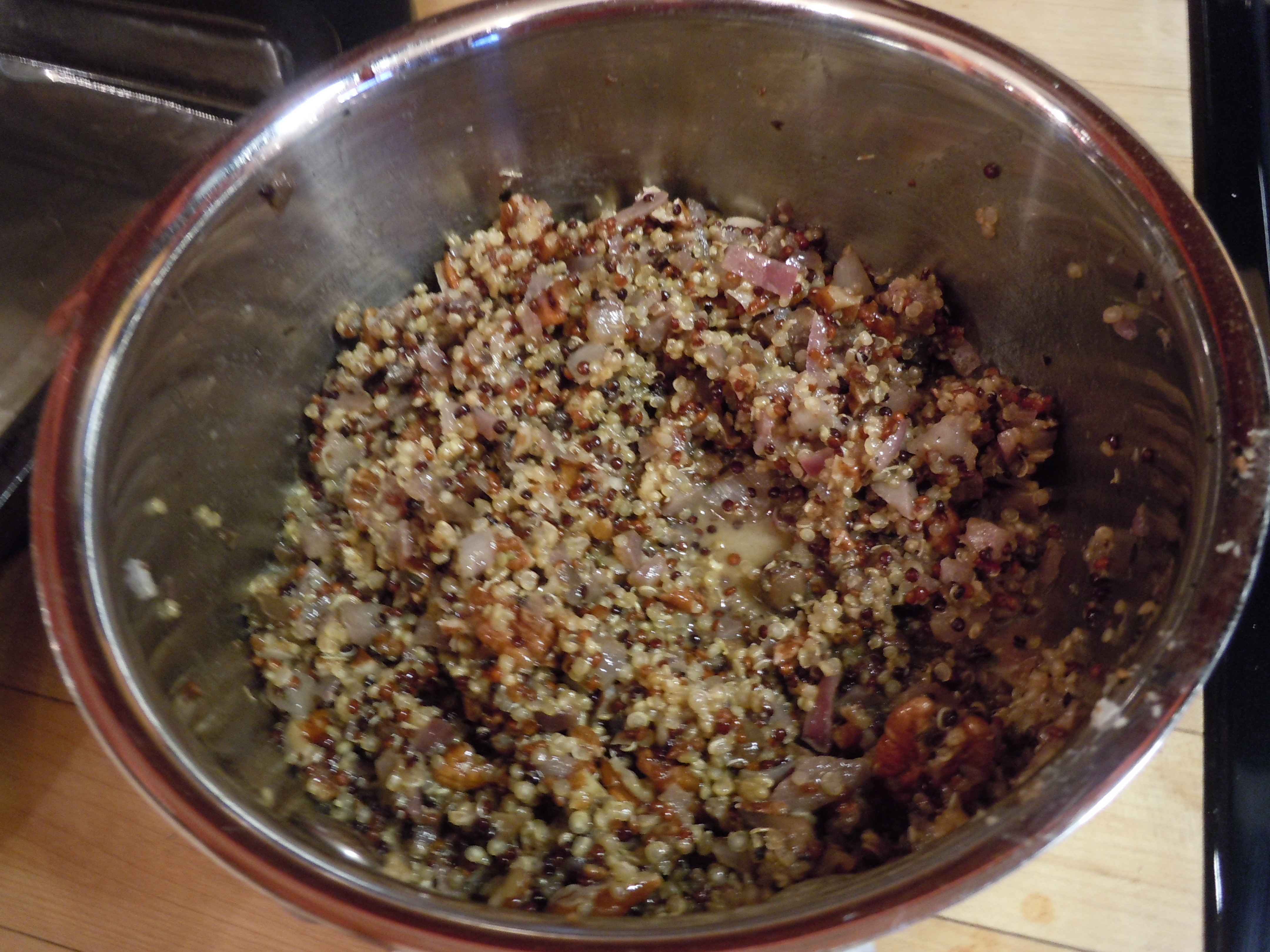 Stir in the quinoa. Add the wine or water to bind the stuffing.