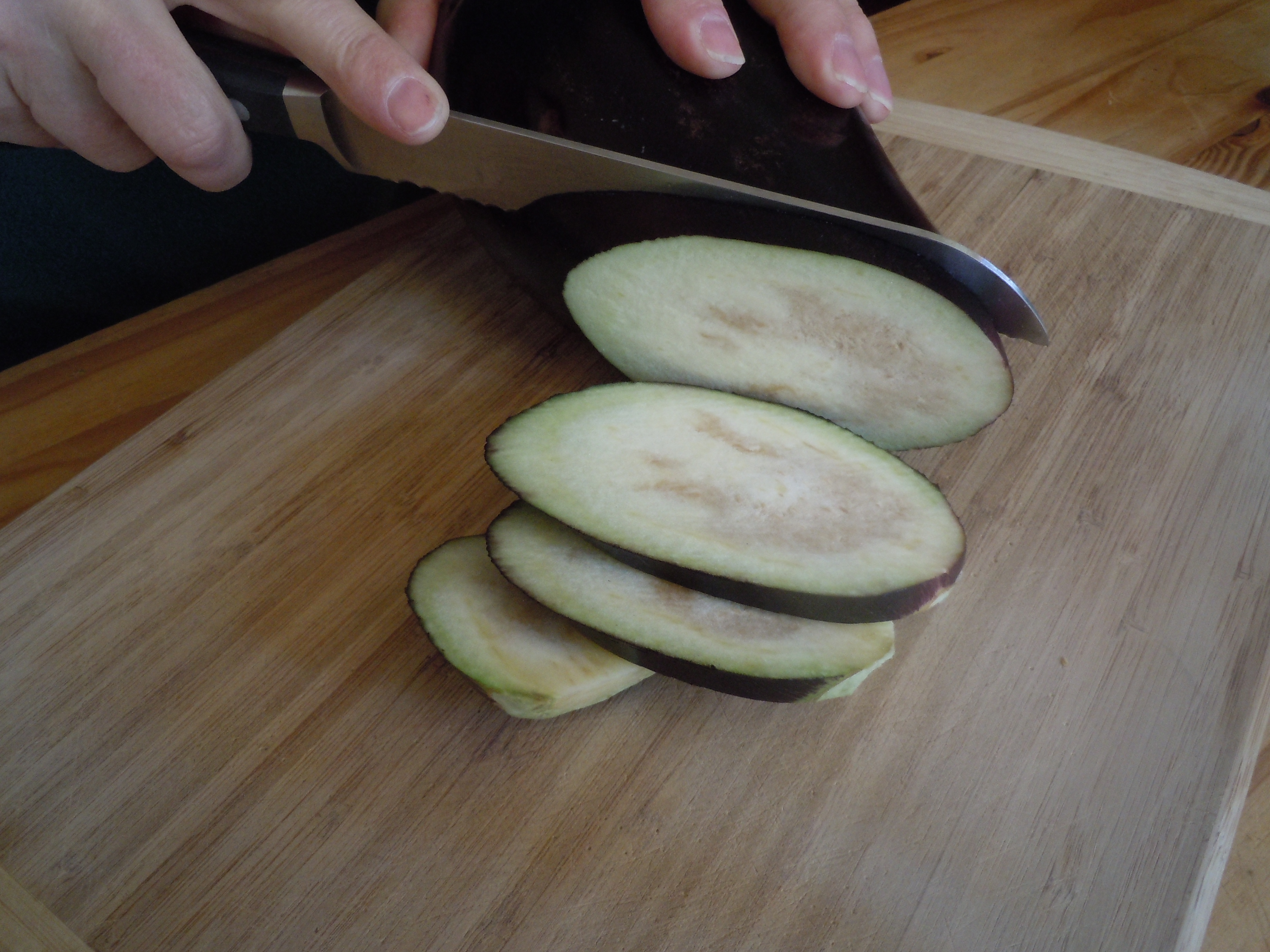 1 large eggplant, sliced diagonally, salted generously and drained for 45 minutes.