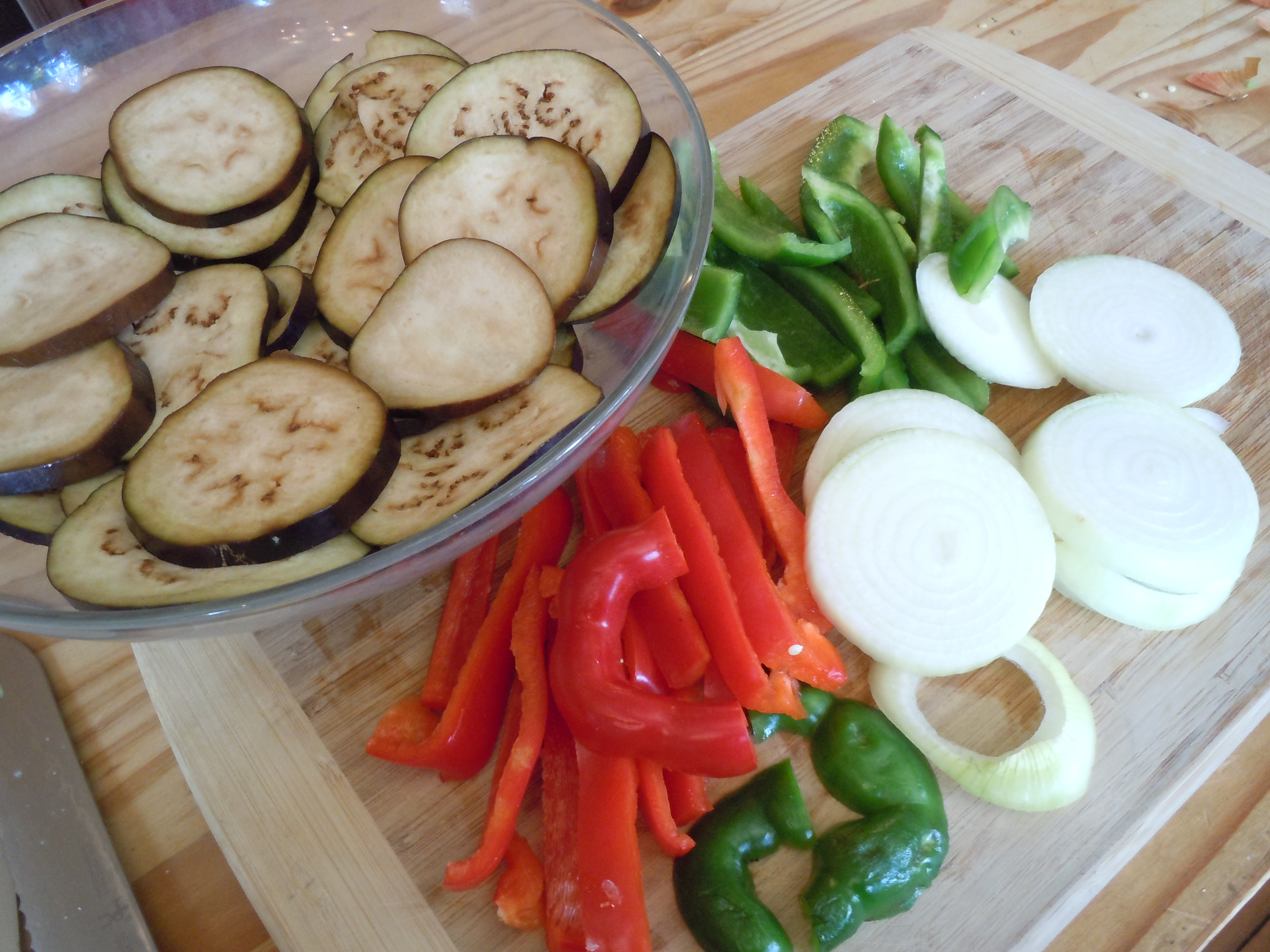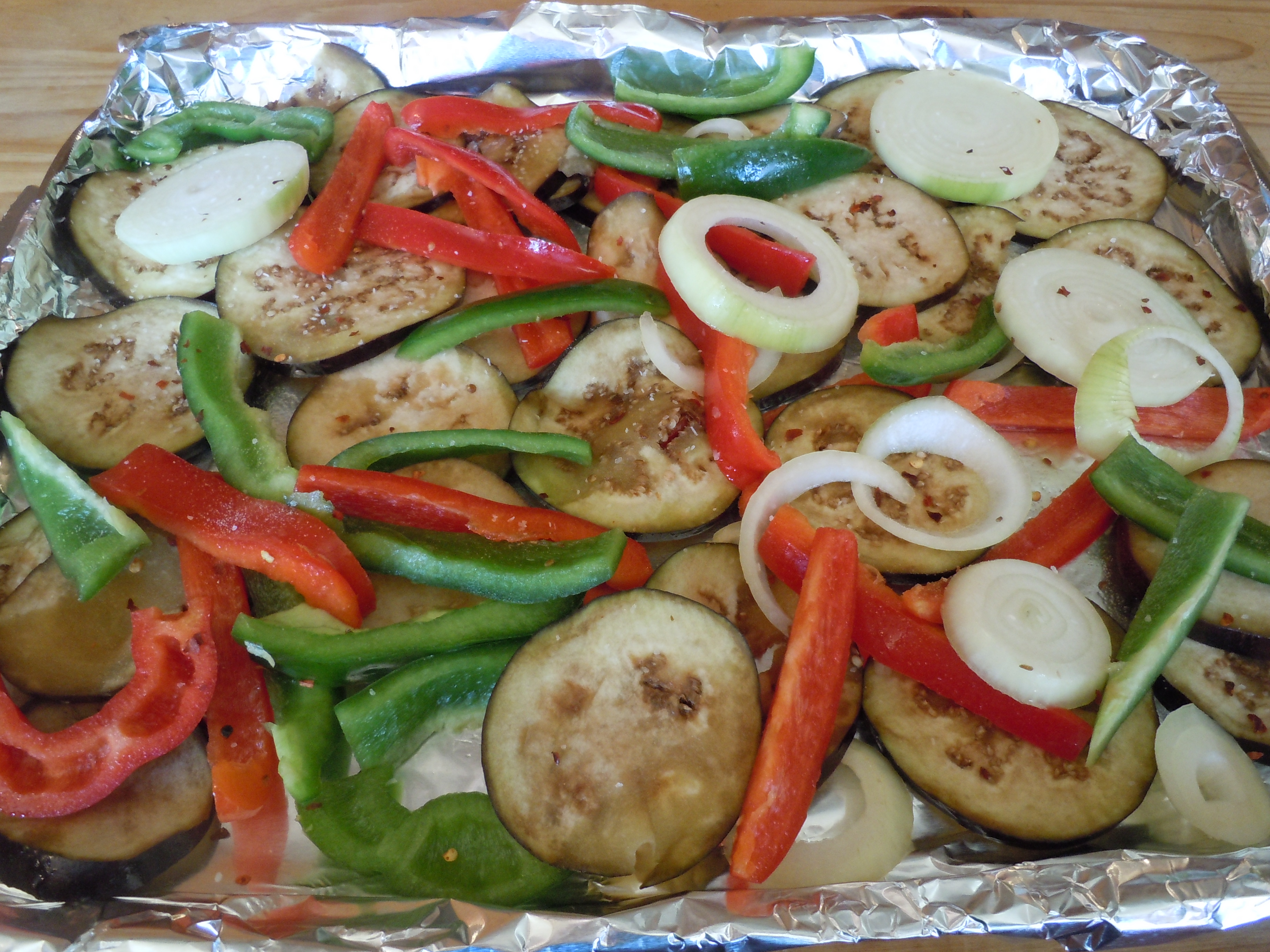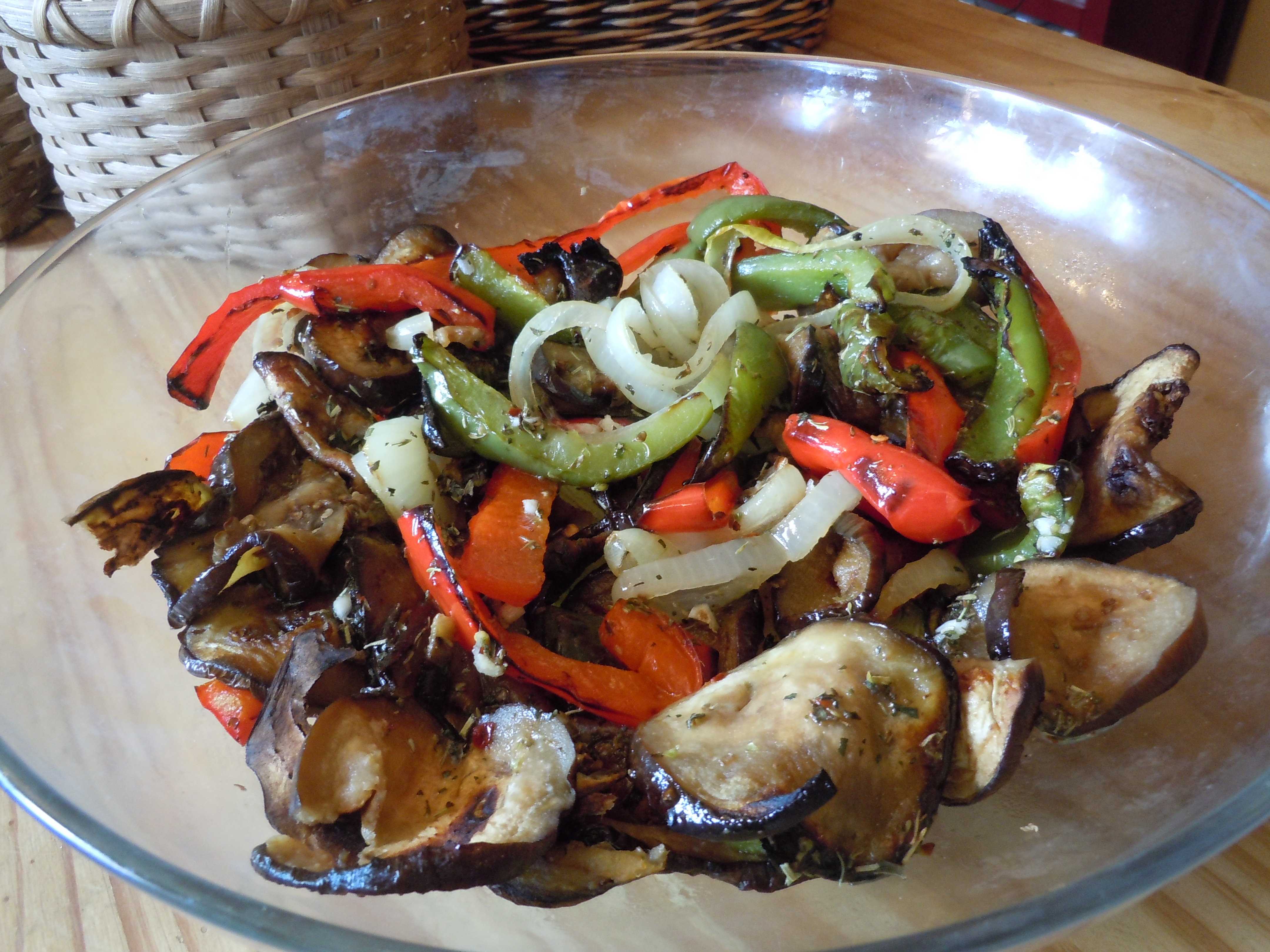 Roasted Marinated Eggplant, Peppers and Onions (serves 4)