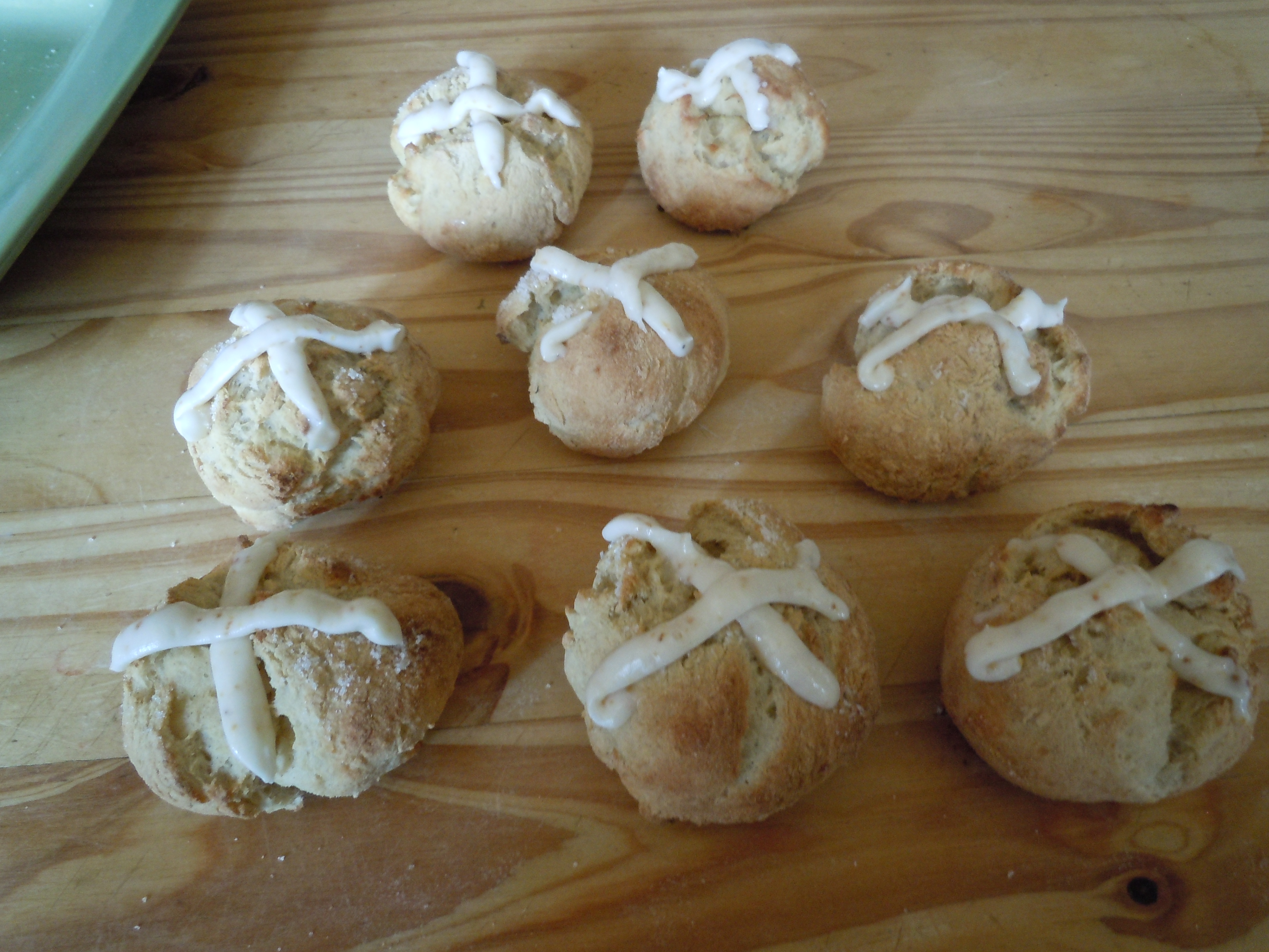 The Maundy Thursday and Good Friday services are over. The bulletins are completed. The sermon is prepared, and the decorating of church is done. Now all is quiet as we wait for the Sunrise on Sunday and the three Eucharists of Easter. The brief lull on Holy Saturday gives me time for some contemplative cooking and another baking experiment. We have always enjoyed hot-cross buns on this Holy Day so this is an opportunity to see how gluten-free ones taste