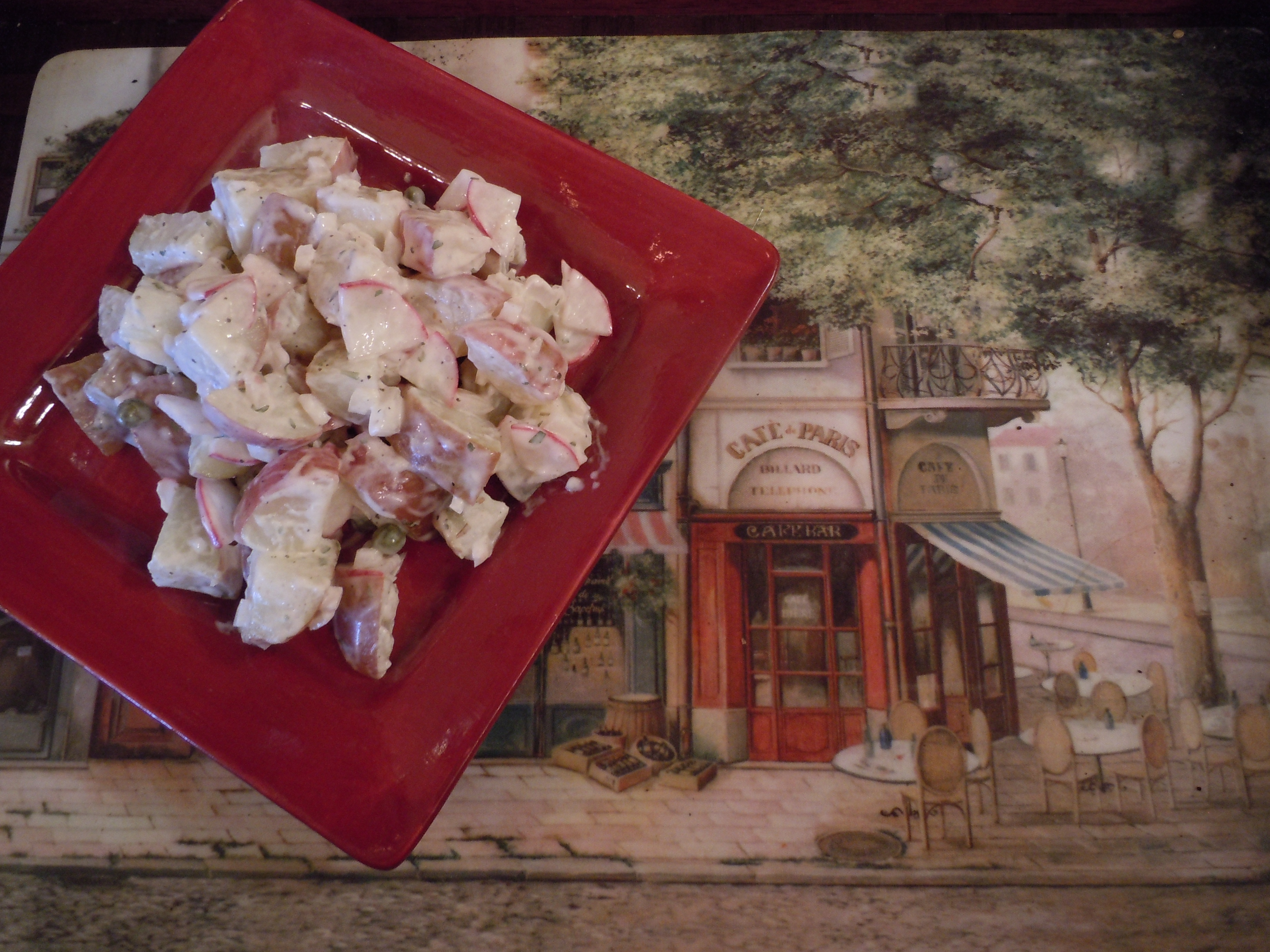 Well, we do live in a 250 year-old farm house and nothing can be done until the rain stops and the adjuster assesses the damage. But a day like today calls for some seriously comforting food. I’m thinking potatoes; no, potato salad; no, really garlicky mayonnaise-rich french potato salad. Yes! And, uh, maybe some oven-grilled asparagus. We may have to eat in the kitchen, but we’ll open a bottle of something wonderful and pretend that we are in a small Parisian Café watching the last romantic showers of April slide down the foggy window-panes. ~ Glyn