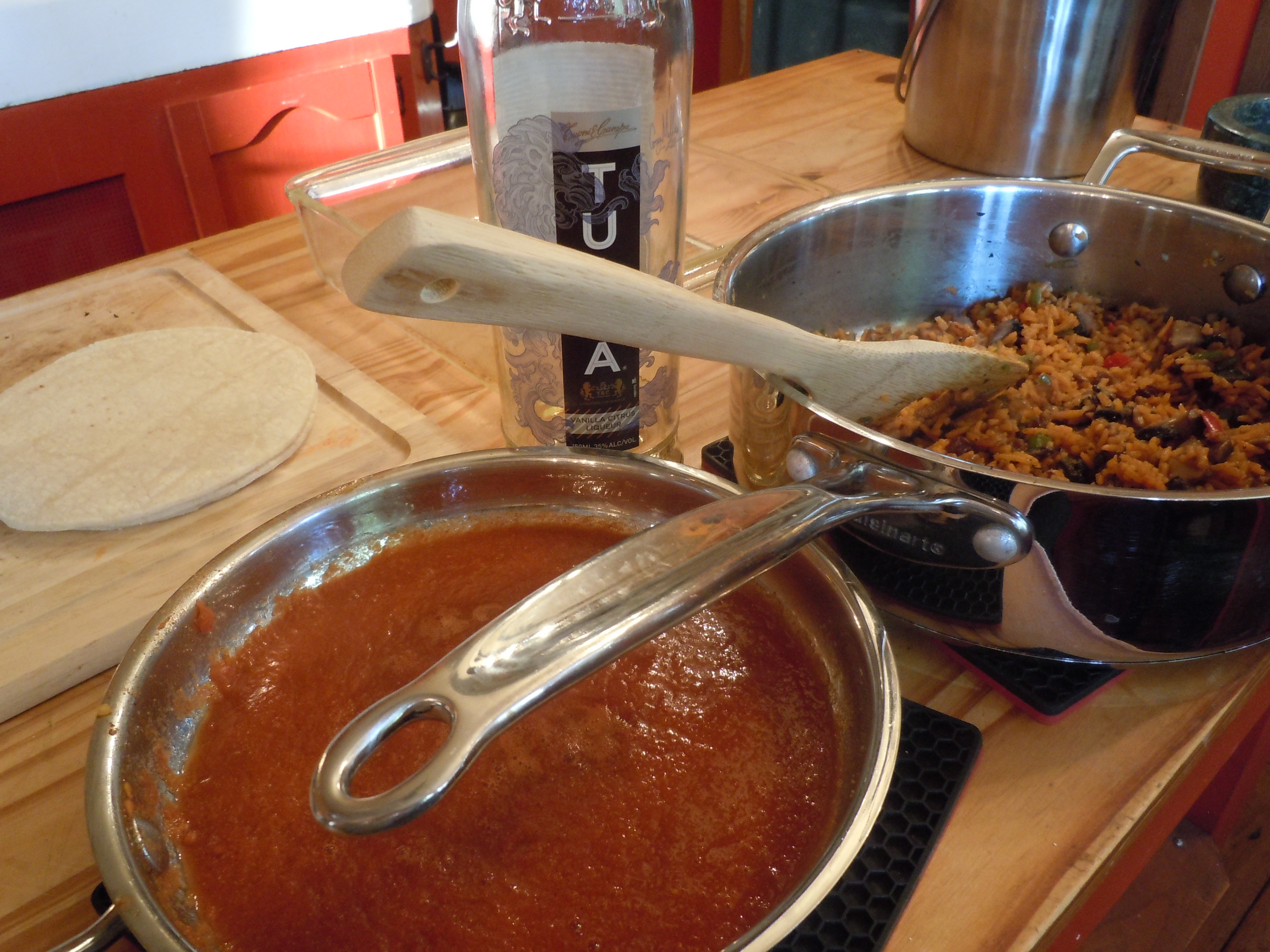 Add another 3 tortillas and the remainder of the rice.