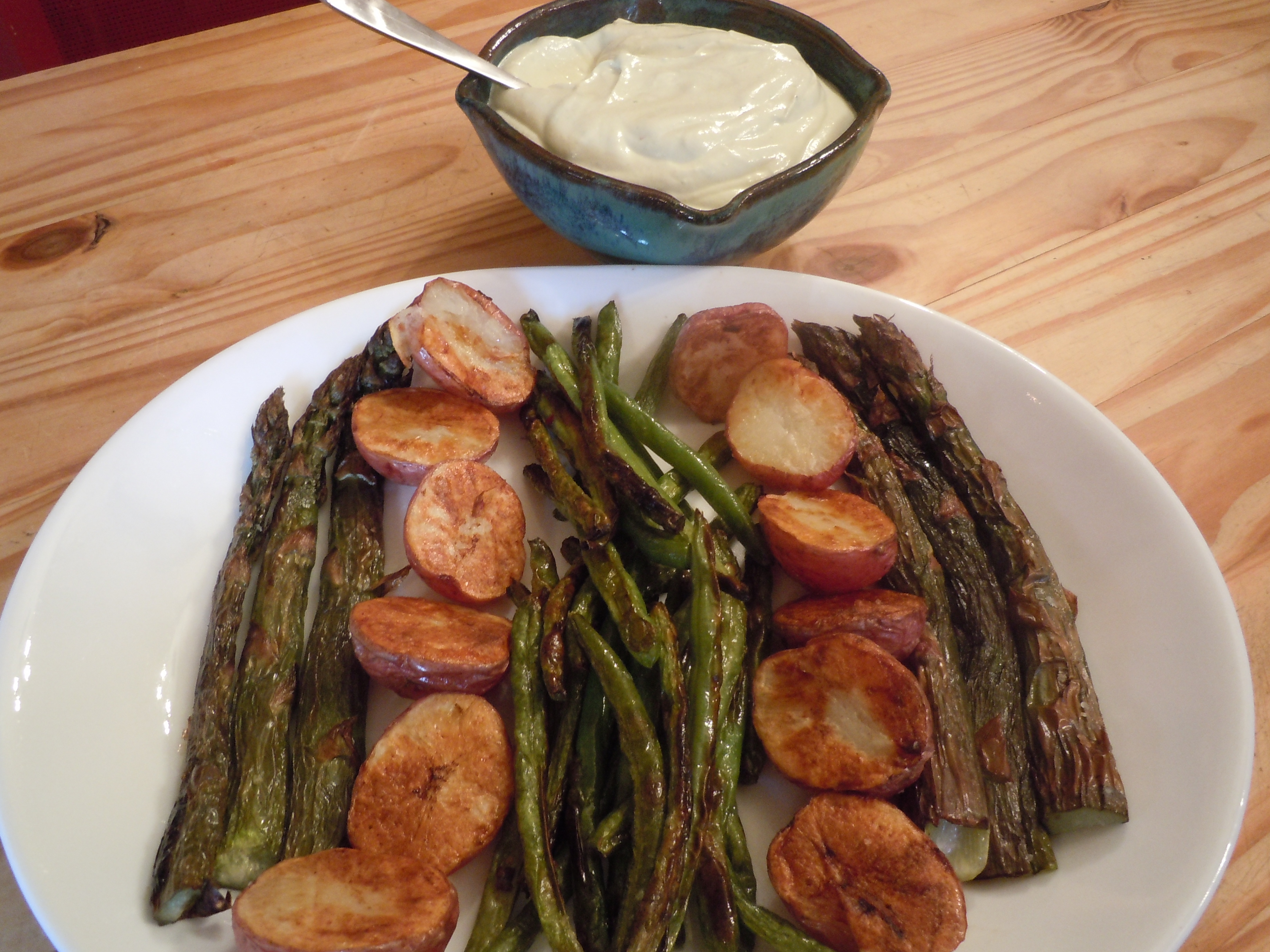 Even though thunderstorms are forecast for half an hour from now, the temperature is in the upper 60’s, the sky is reasonably clear at the moment and the house is a short dash away, so we are risking “Dinner in the Gazebo.” It seems like a really good idea have roasted veggies tonight with a nice high protein sauce.