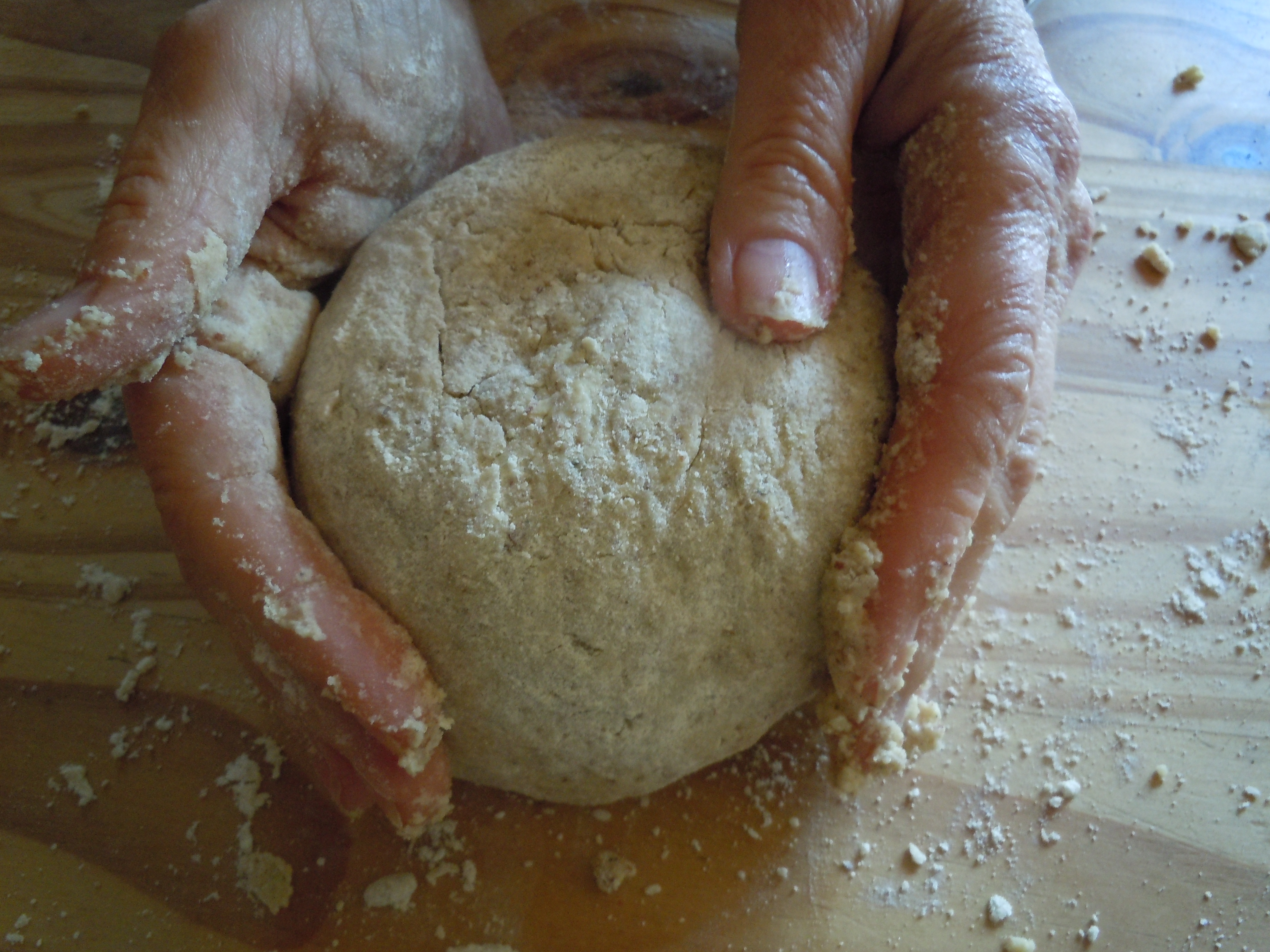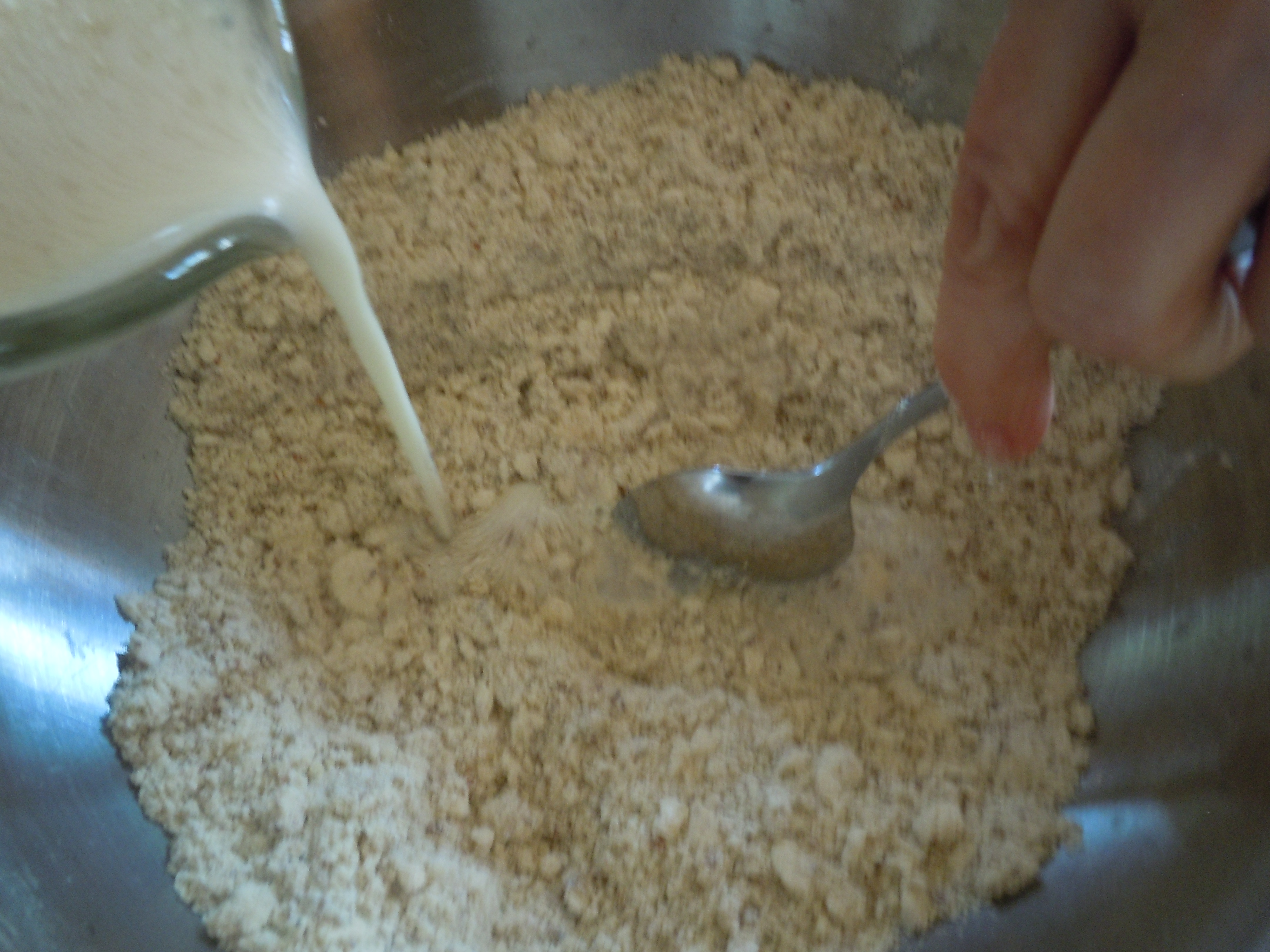 4 Stir in the soymilk to make a soft dough (adding more flour if needed)