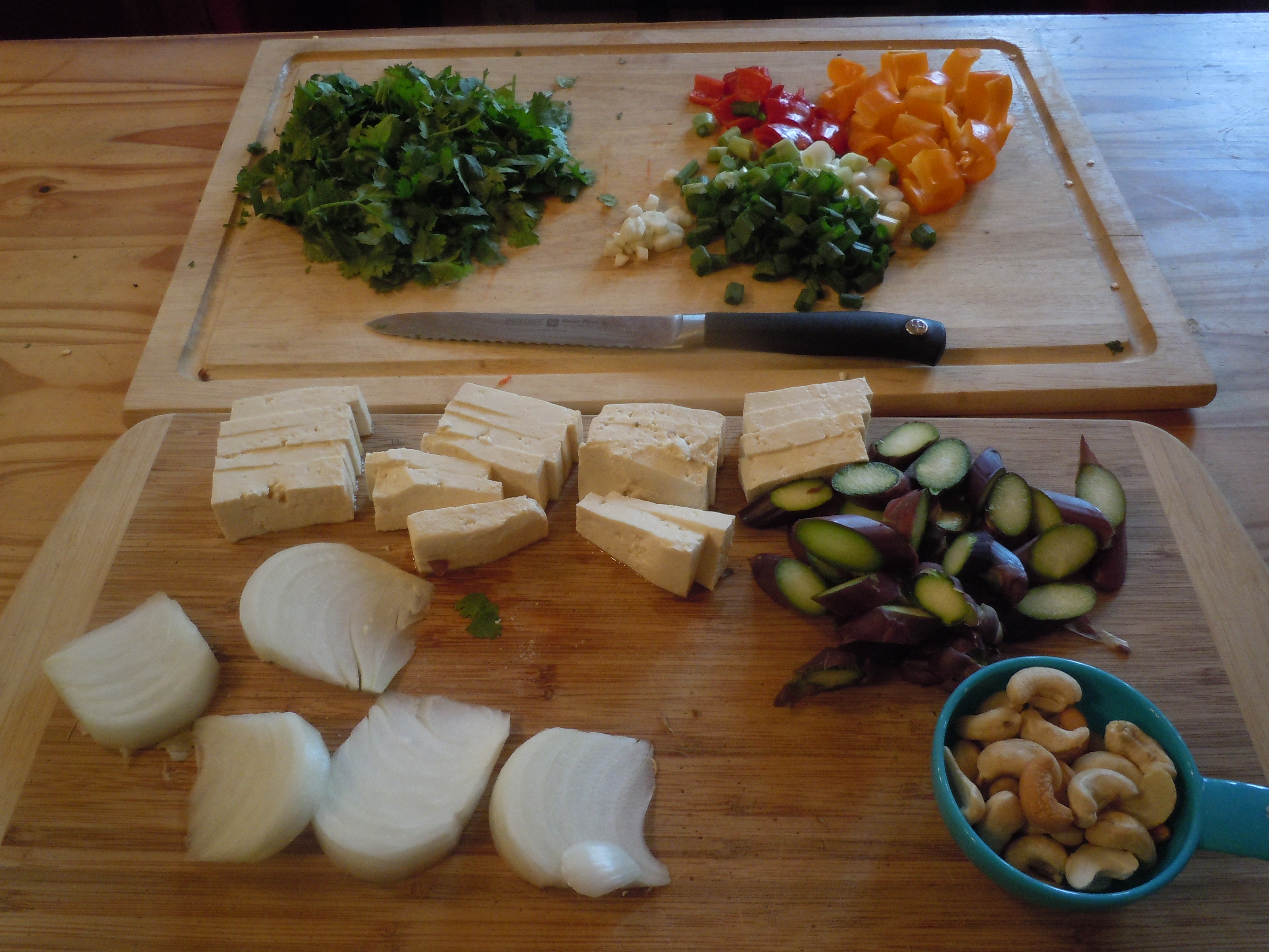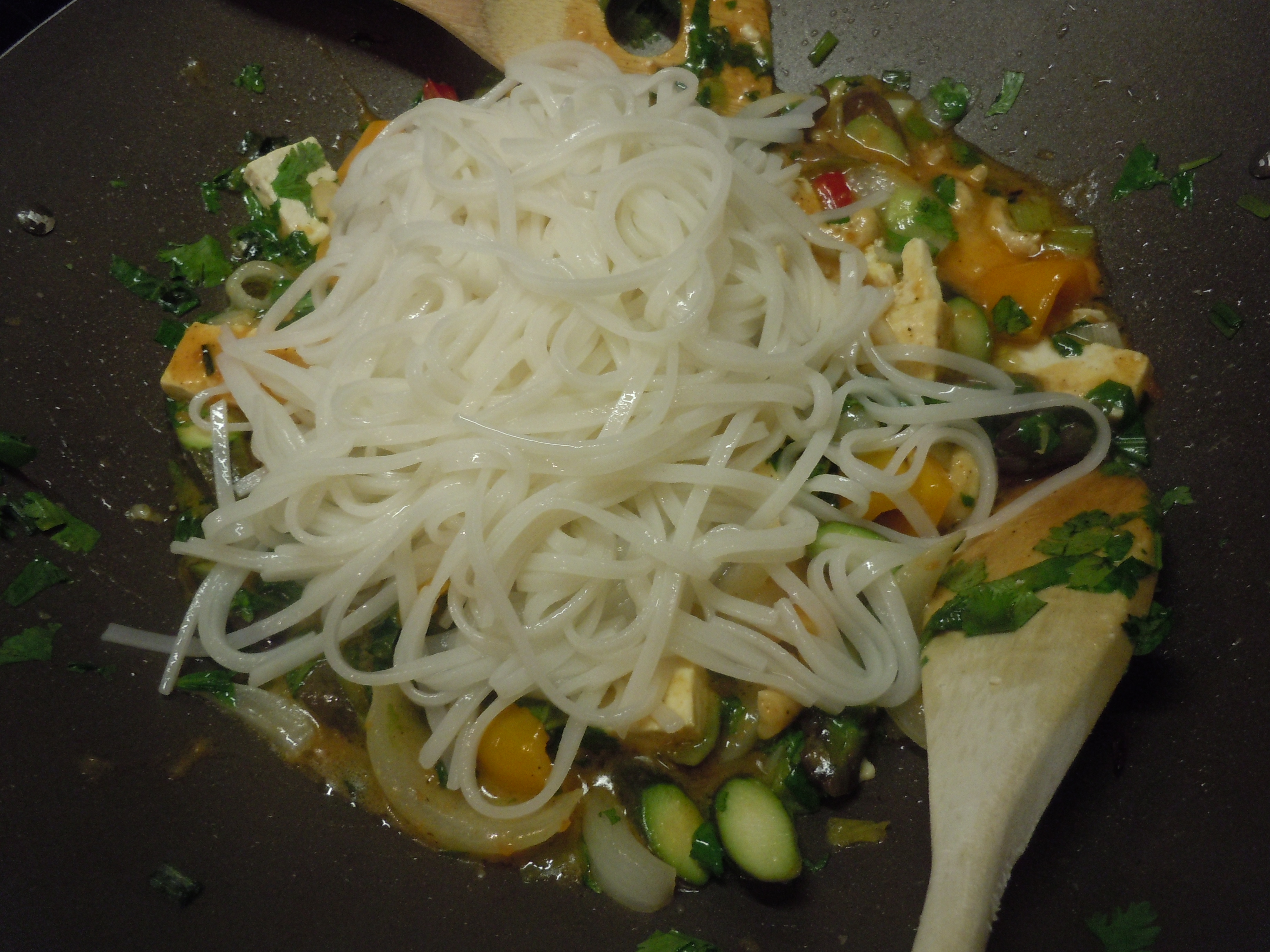 Thai Noodles with Cashews, Asparagus and Tofu (serves 4 or 2 very hungry people)