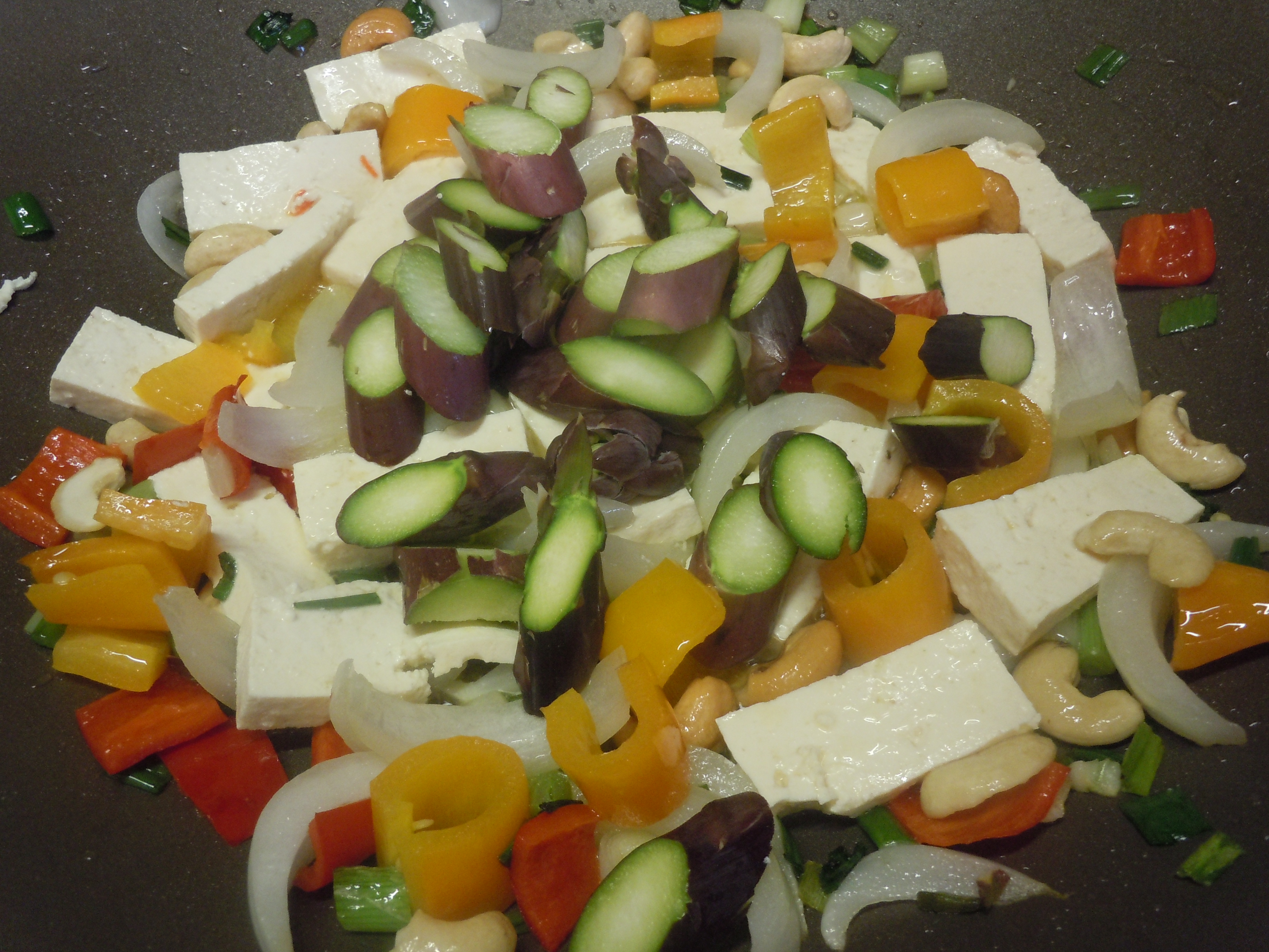 5. Add the asparagus and tofu.
