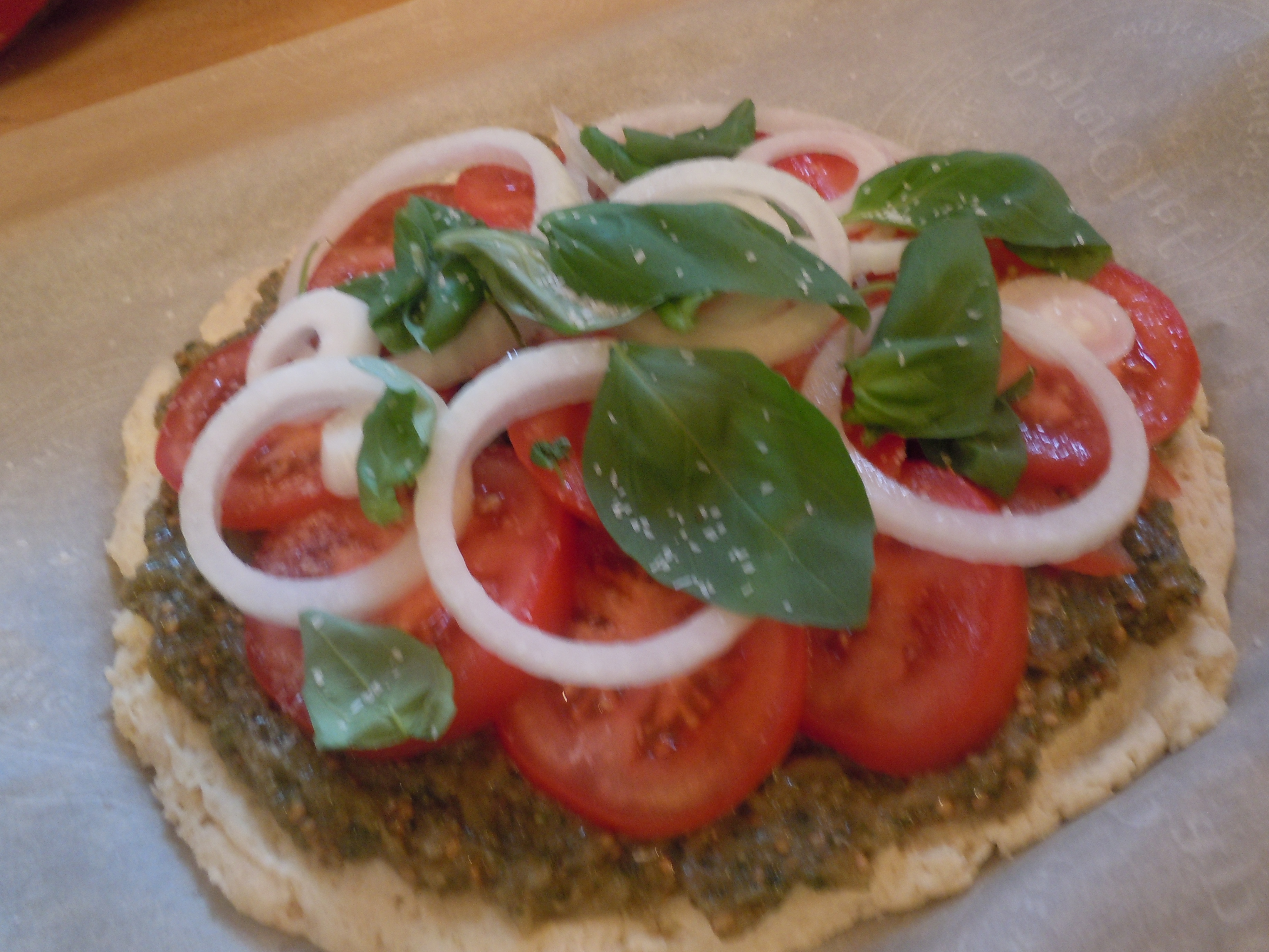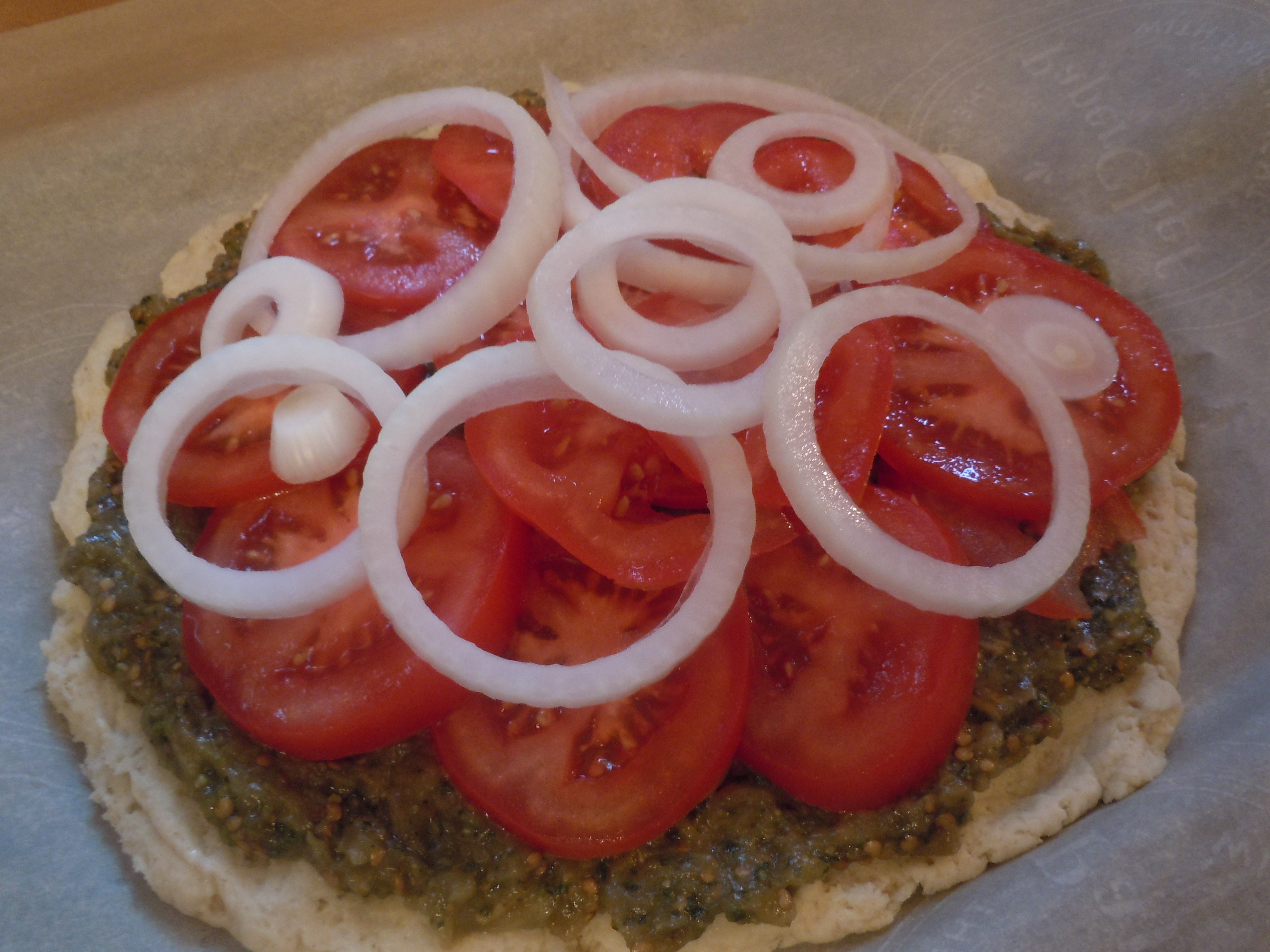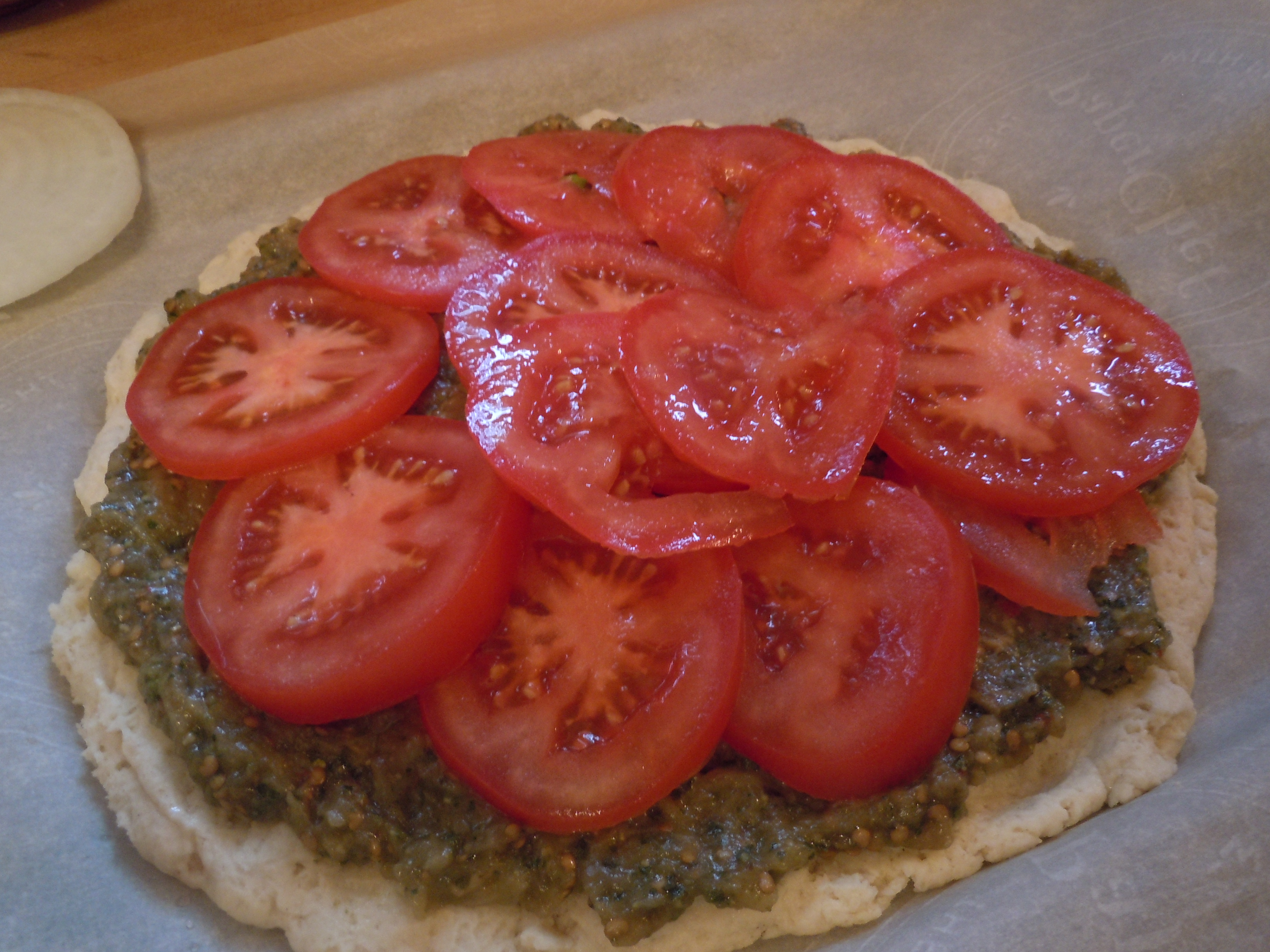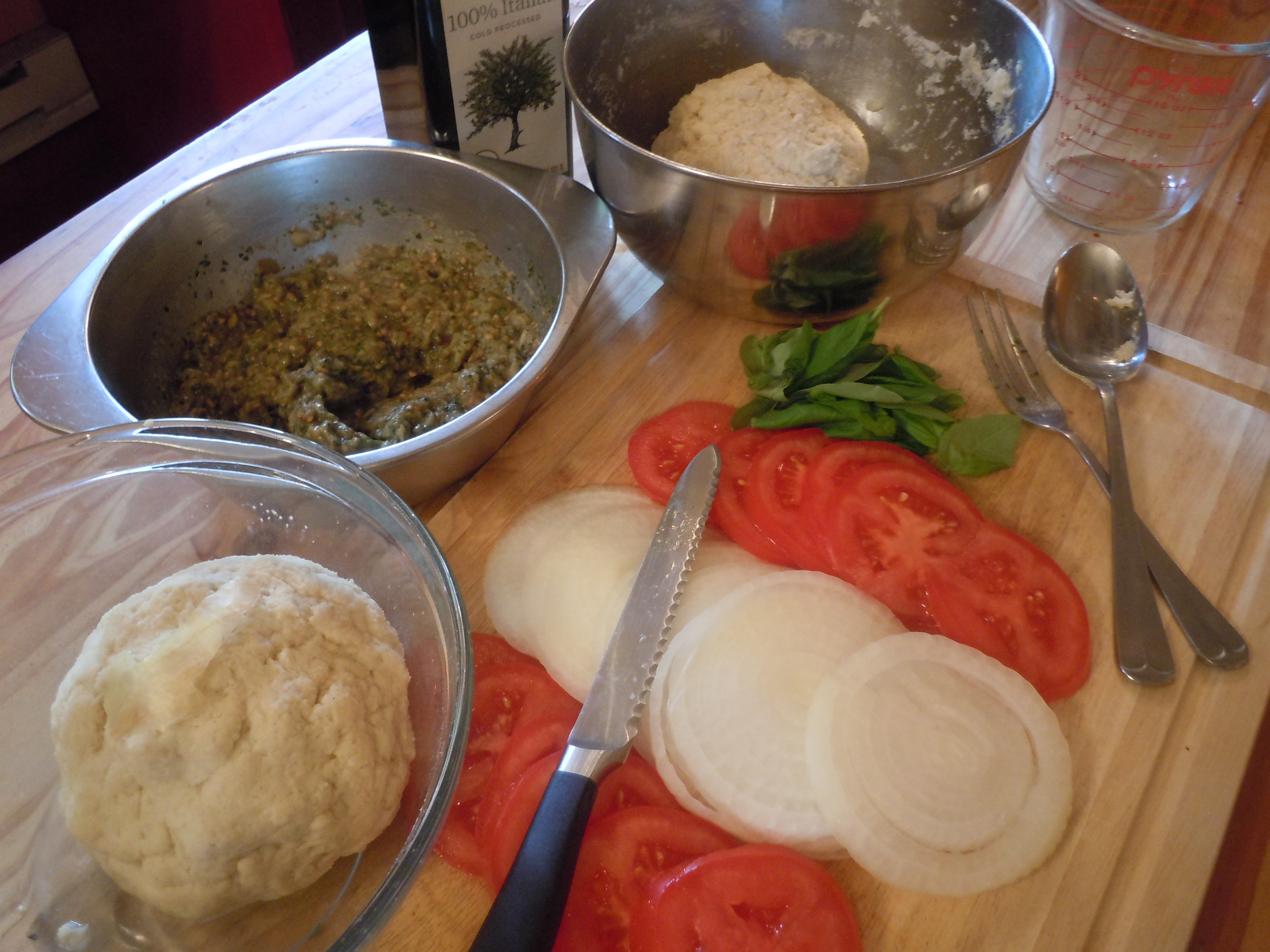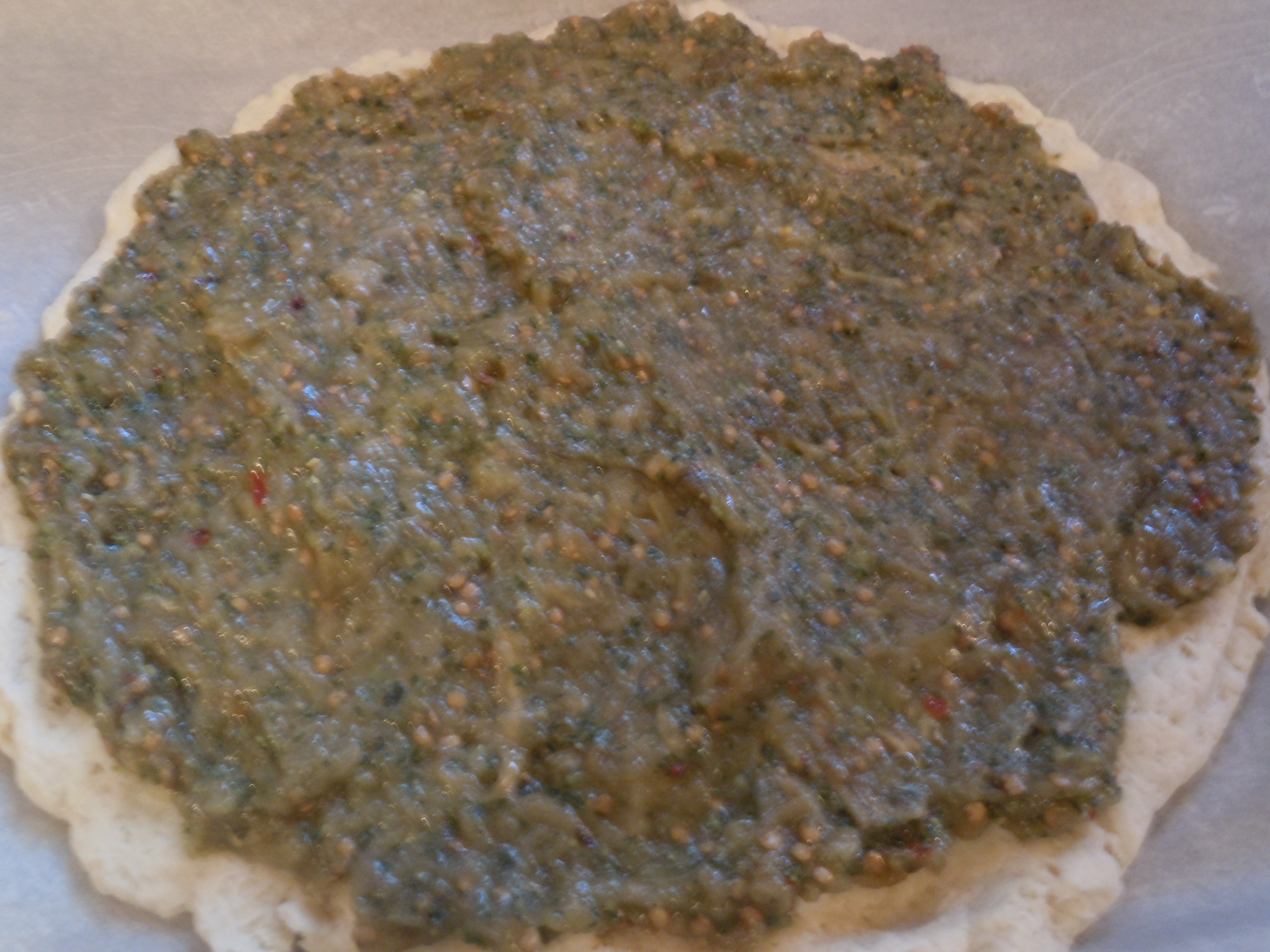 3. While the dough is rising, combine the baked eggplant with the pesto.