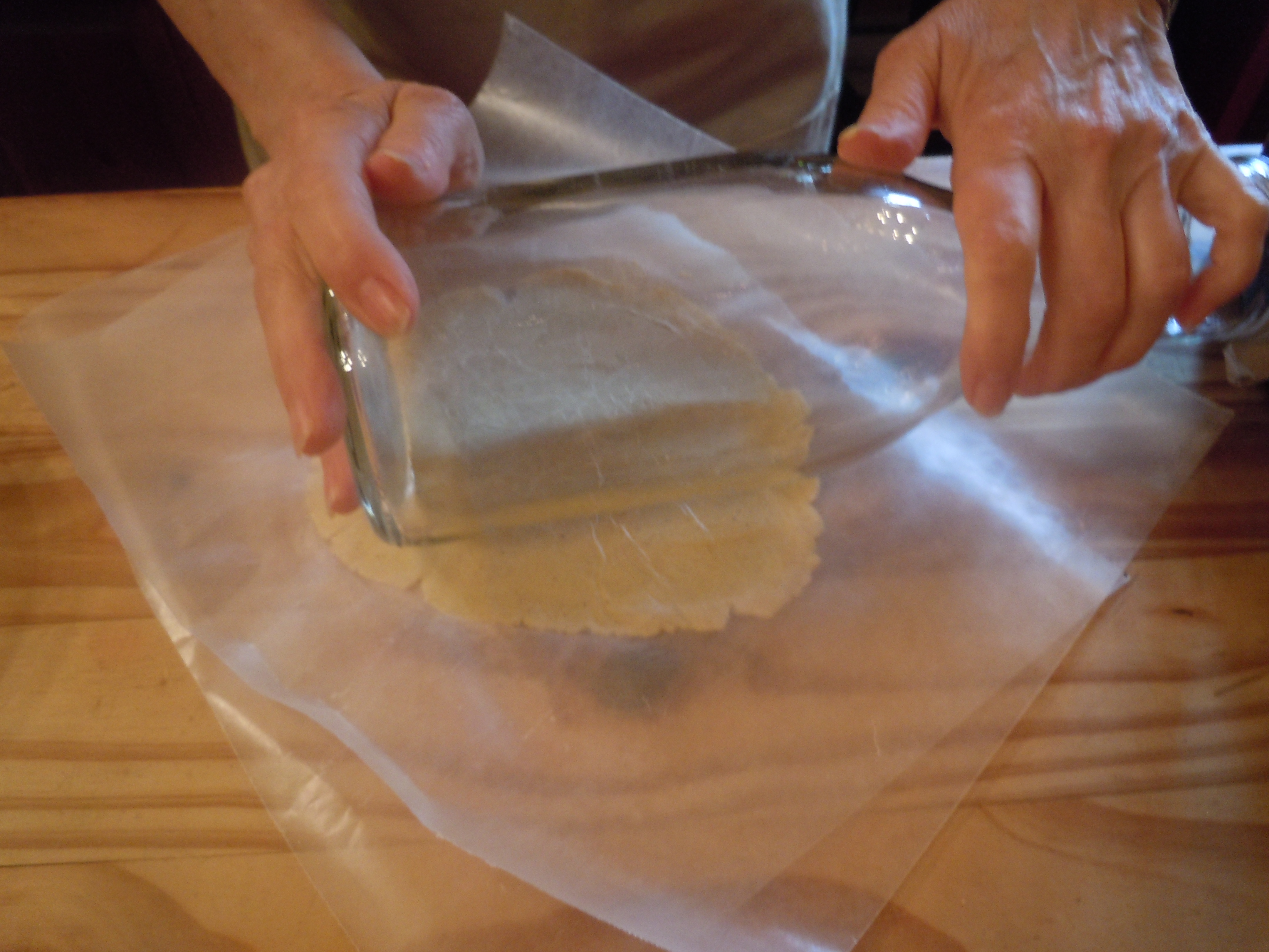6. Form the tortillas, either by hand, by tortilla press, or by rolling into 6″ rounds using waxed paper and a rolling pin.