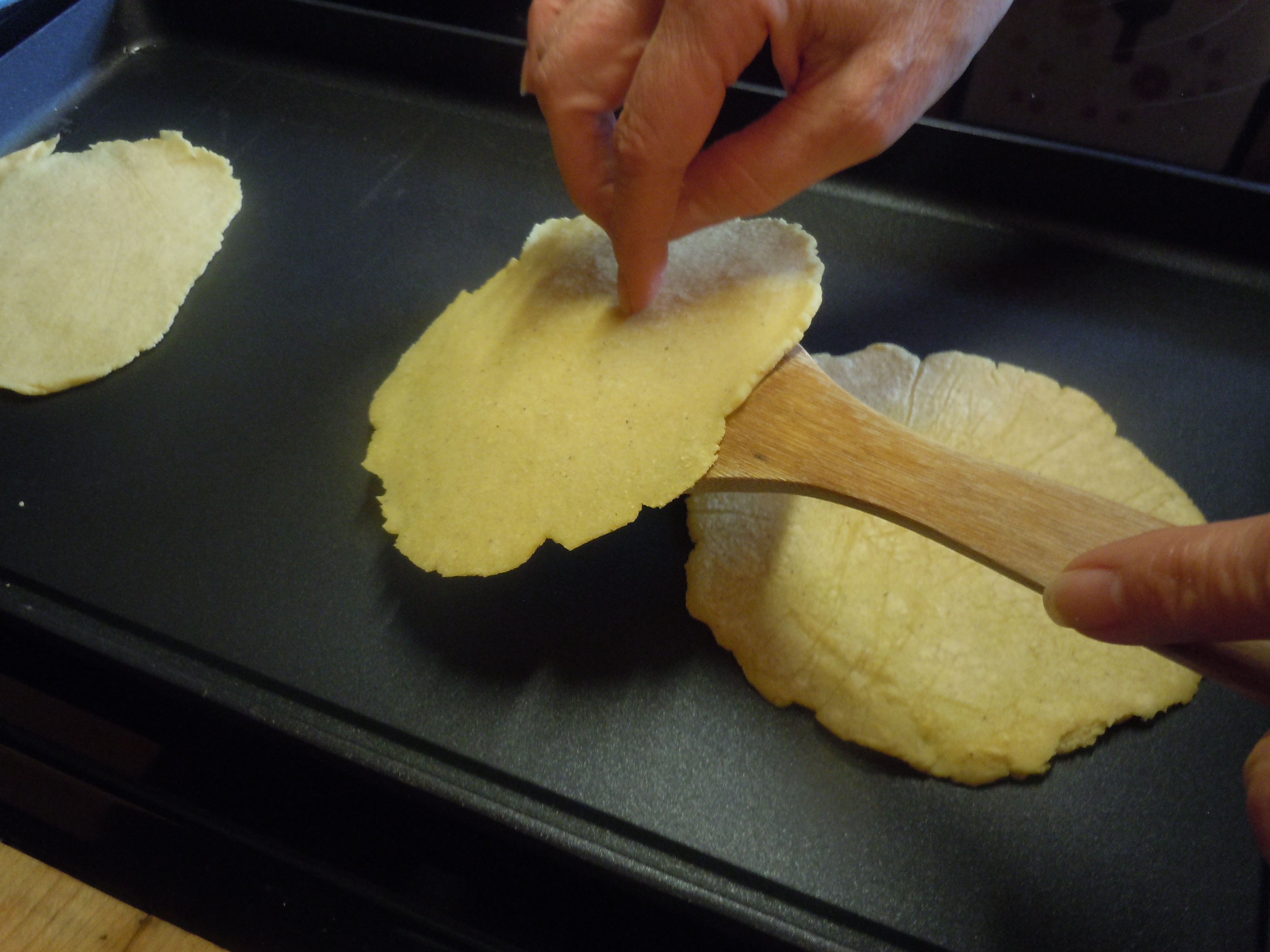 I have heard it said that if you do not learn to make hand-formed tortillas as a child, you are very unlikely to ever learn. This recipe is made with a rolling pin….next time I will try to form them by hand. ~ Glyn and Will