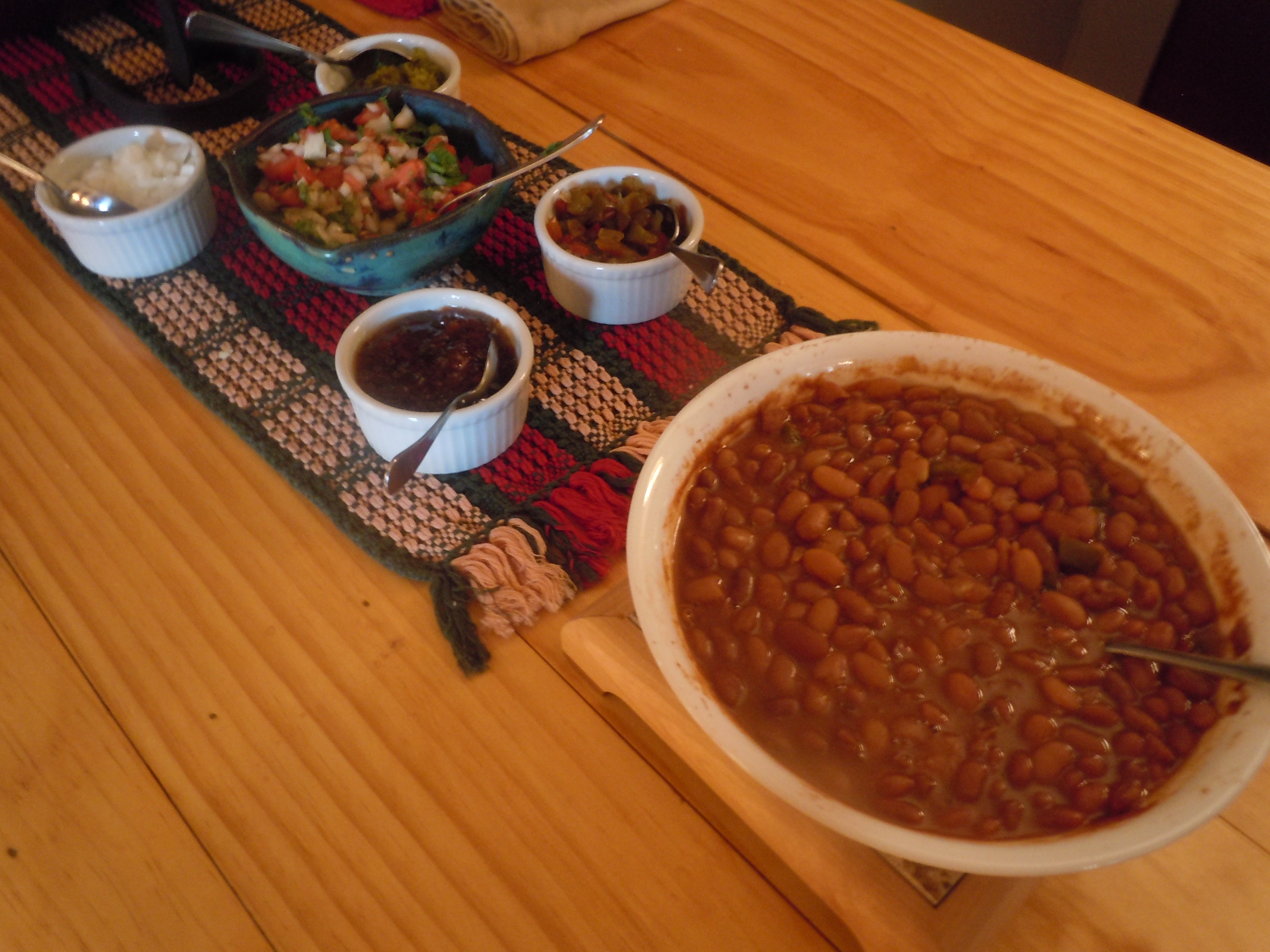 9. Serve the beans with the tortillas, pico de gallo and optional pepper relish.