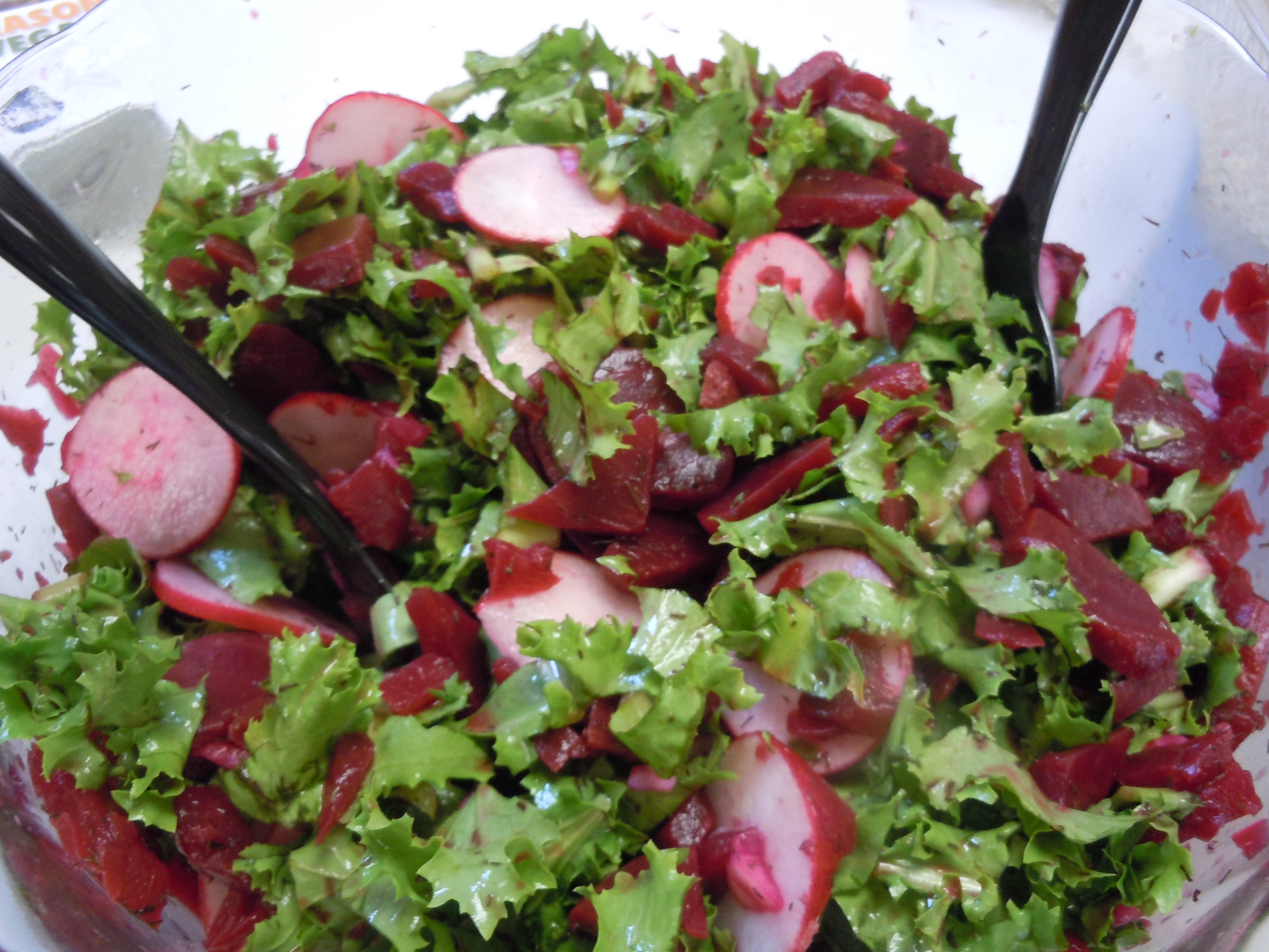 The tang of the chicory greens, and the spicy heat of the radishes are wonderful companions to the earthiness of pickled beets. This salad is cool and refreshing and any leftovers will keep for at least a day in the fridge. Pair this with Quinoa Tabbouleh for a summertime lunch.