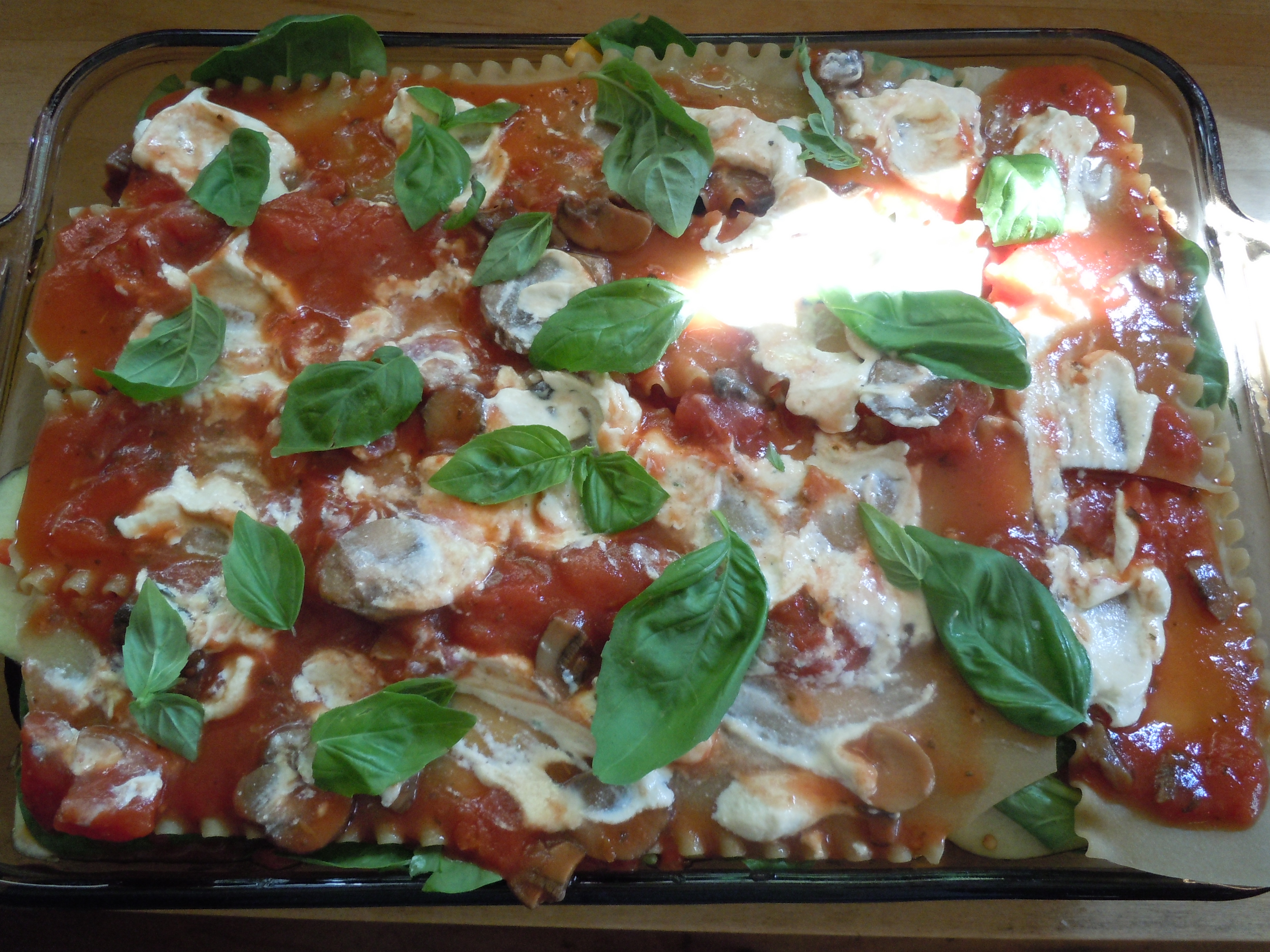 Making this dish is an opportunity to express you creative side as you combine vegetables, textures, and colors. Use noodles that do not have to be pre-cooked. This is especially important with gluten-free lasagna noodles. We use DeBoles rice lasagna noodles. And if you make your own marinara sauce and vegan ricotta, you’ll add another hour or so to the preparation. But if you used prepared sauces and such the time drops to 2 hours as above. And in either case you will have 90 minutes for something else as the lasagna bakes. Pair with a green salad and your favorite Italian red and you are good to go. We have delightfully discovered that our Vegan Schnoodle, Rudy, absolutely loves the raw spinach in this recipe and begs for it as we prepare the dish! ~ Glyn and Will.
