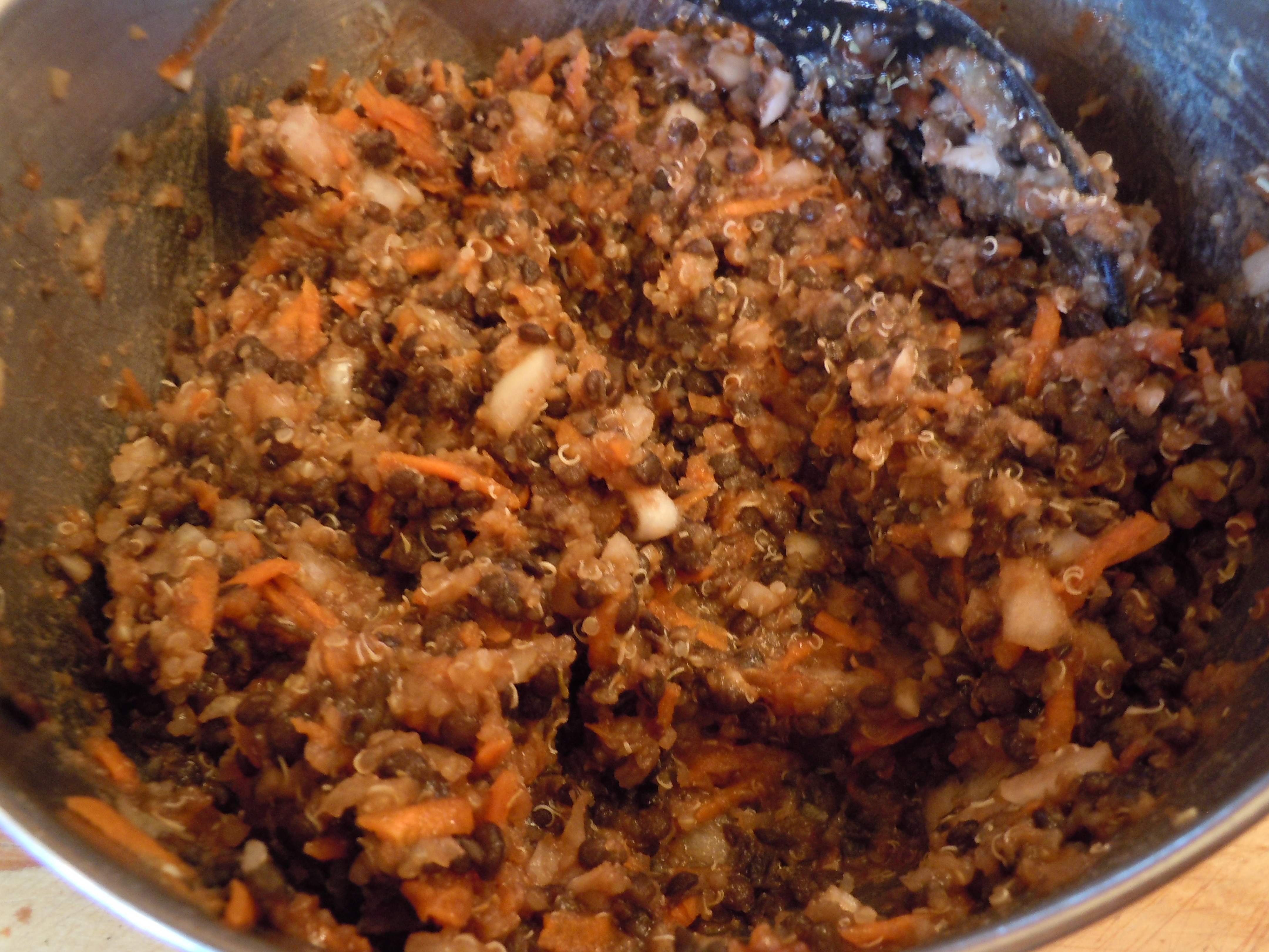 4 Grate the carrot and finely chop the onions and add to the lentils.