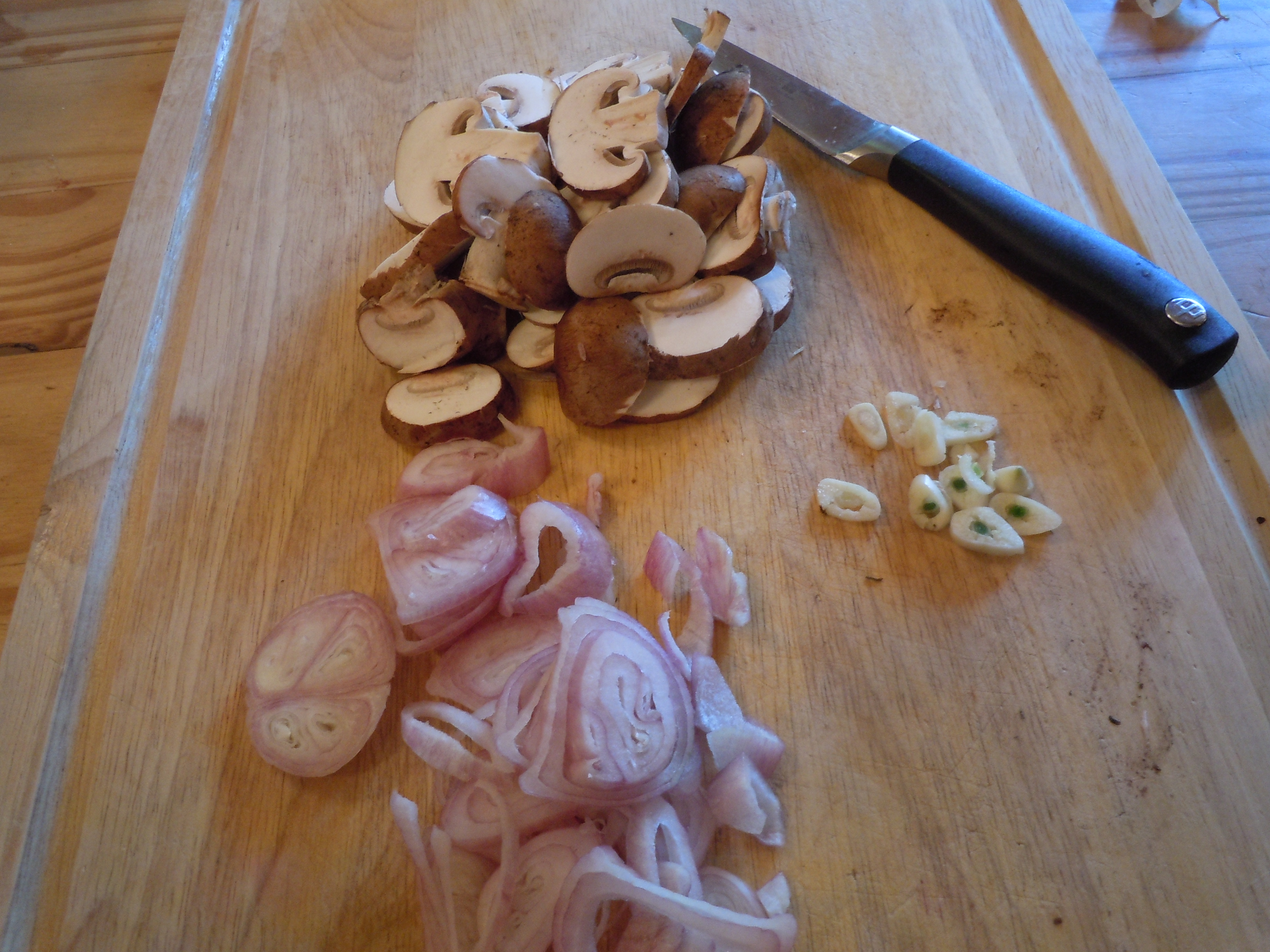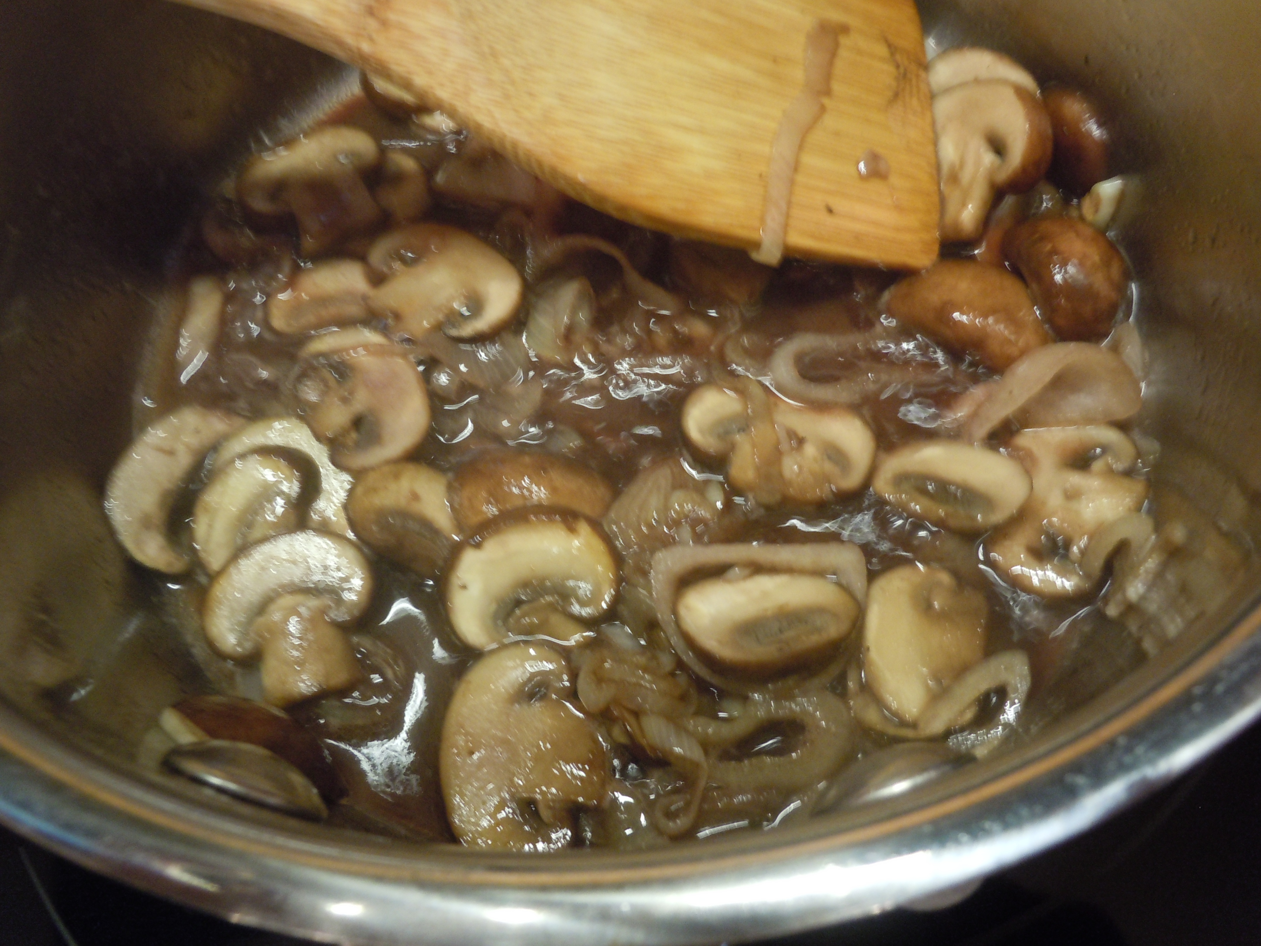 1 Sauté the mushrooms, shallot and garlic in the margarine.