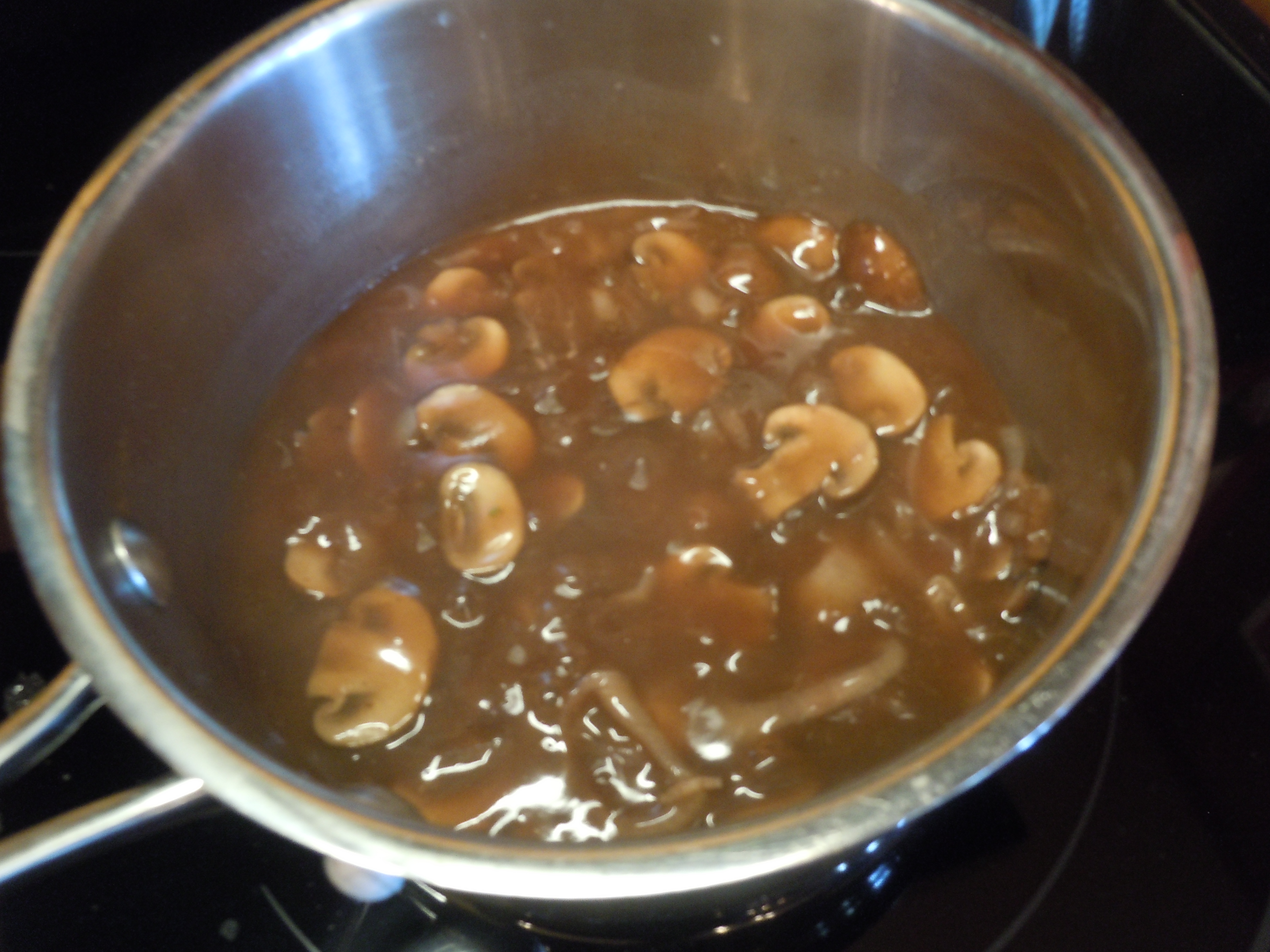 2 Stir in the Brown Broth, the A-1 sauce, and the wine.