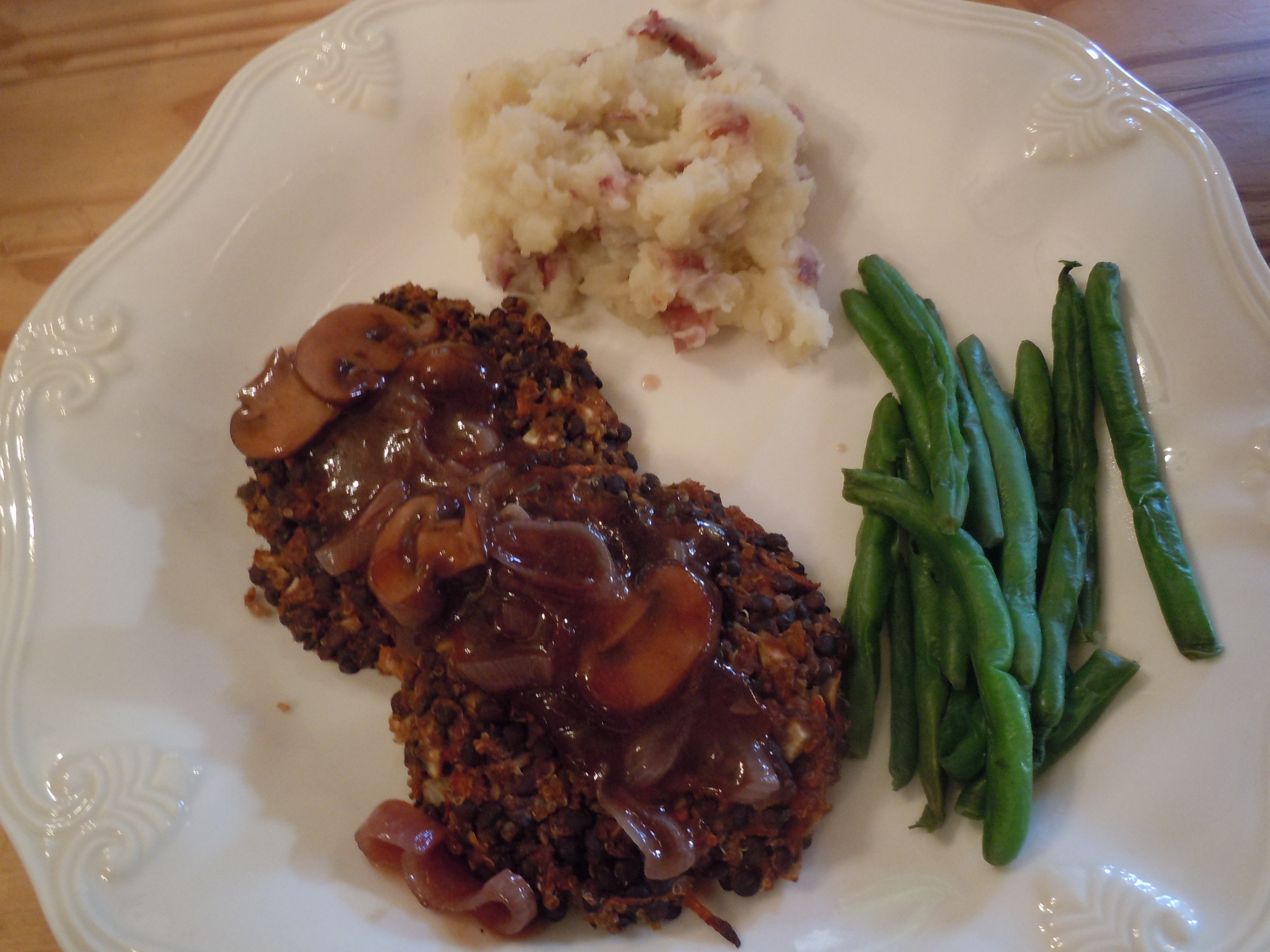 Lentil “Salisbury Steaks” with Mushroom Gravy