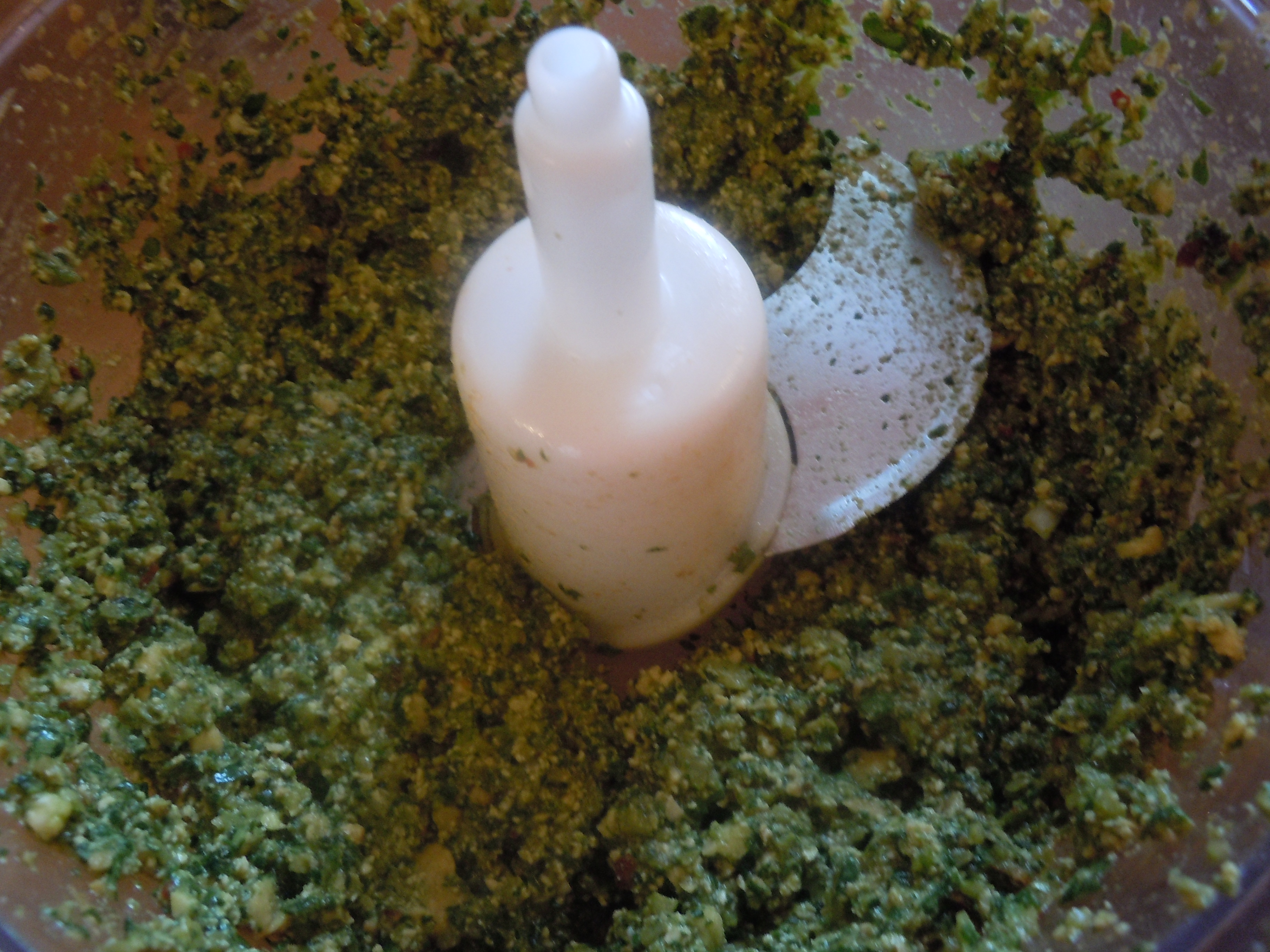4 Add the yeast, onion, garlic, pepper, chili sauce and basil strips to the bowl of the processor.