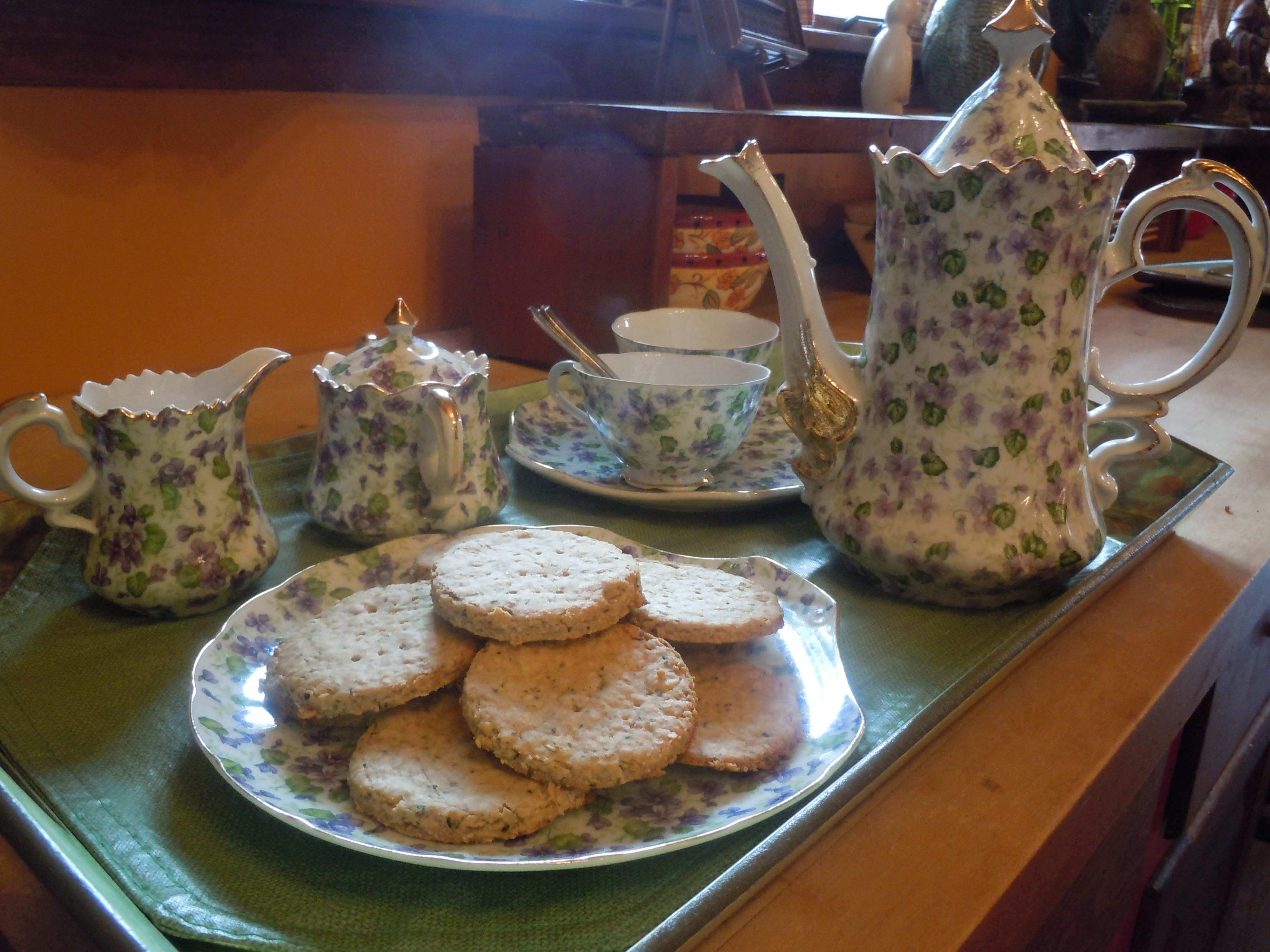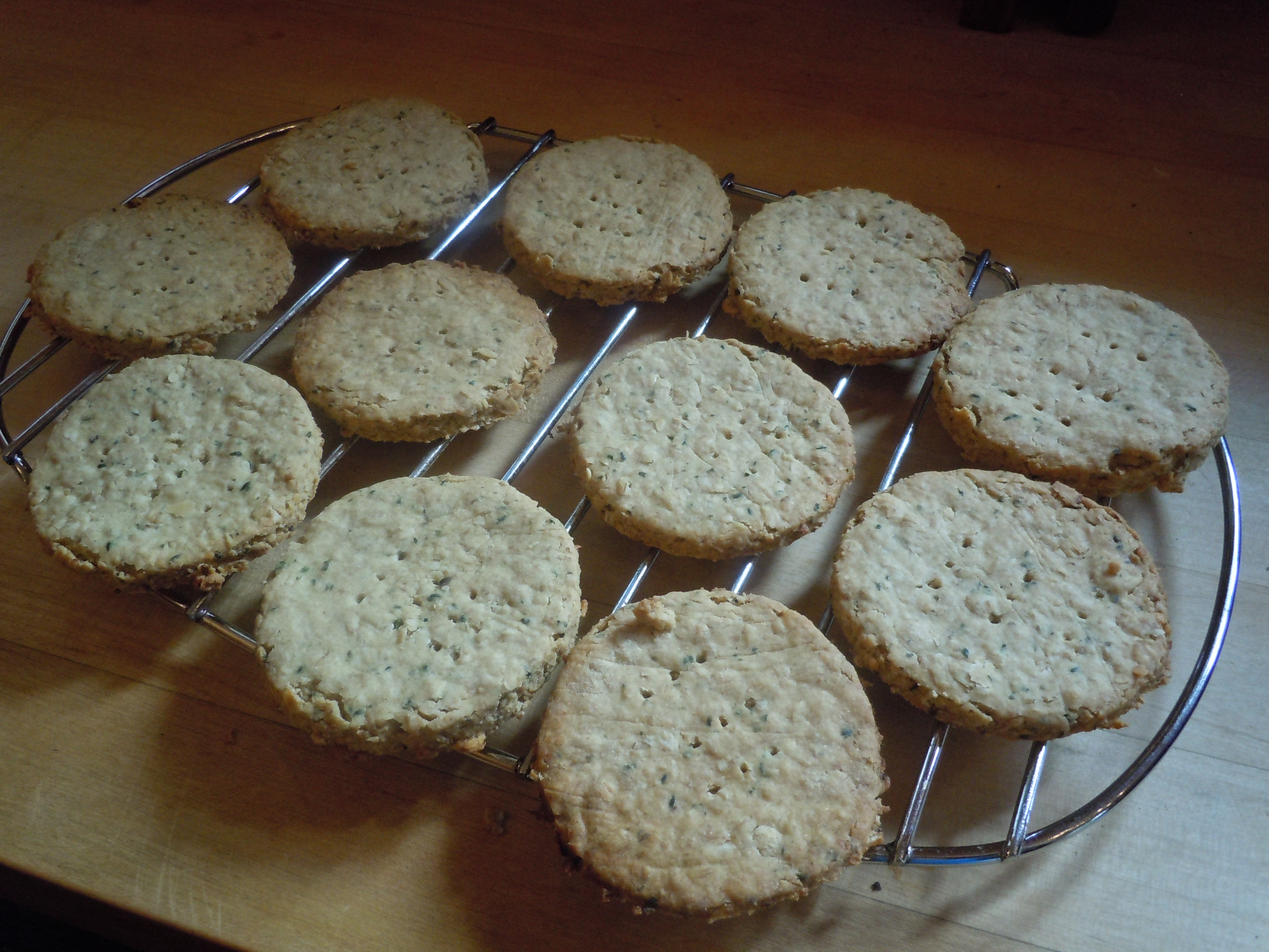 Between us, Will and I have over a century of experience as cooks and bakers, but we have to admit that vegan-gluten-free-low-sugar baking is the biggest challenge we have yet encountered. Commercially prepared gluten-breads are generally loaded with sugar with the consistency of ash, and anything palatable contains egg or dairy. So, I have been tweaking (with various degrees of success) my pre-gluten-intolerant recipes for breads. Today, however, was an unqualified success! These oatcakes taste just like the ones we have enjoyed on each of our numerous trips to Scotland. They are crisp, light, and have a very pleasantly nutty taste (thanks to the hemp seed). They will be a great addition to our afternoon tea (or, with a wee dram – Will) , especially if served with a bit of unsweetened fruit spread. They are listed as easy to prepare, and they are — just be aware that you will be working with a relatively stiff dough and that you may need a bit of patience to get it rolled thinly enough. Note: These are not a snack food! But if you eat them as one of four or five smaller meals in a day, they won’t break the bank, and they will provide you with far more protein than the equivalent calories’ worth of corn chips or commercially prepared crackers! ~ Glyn and Will