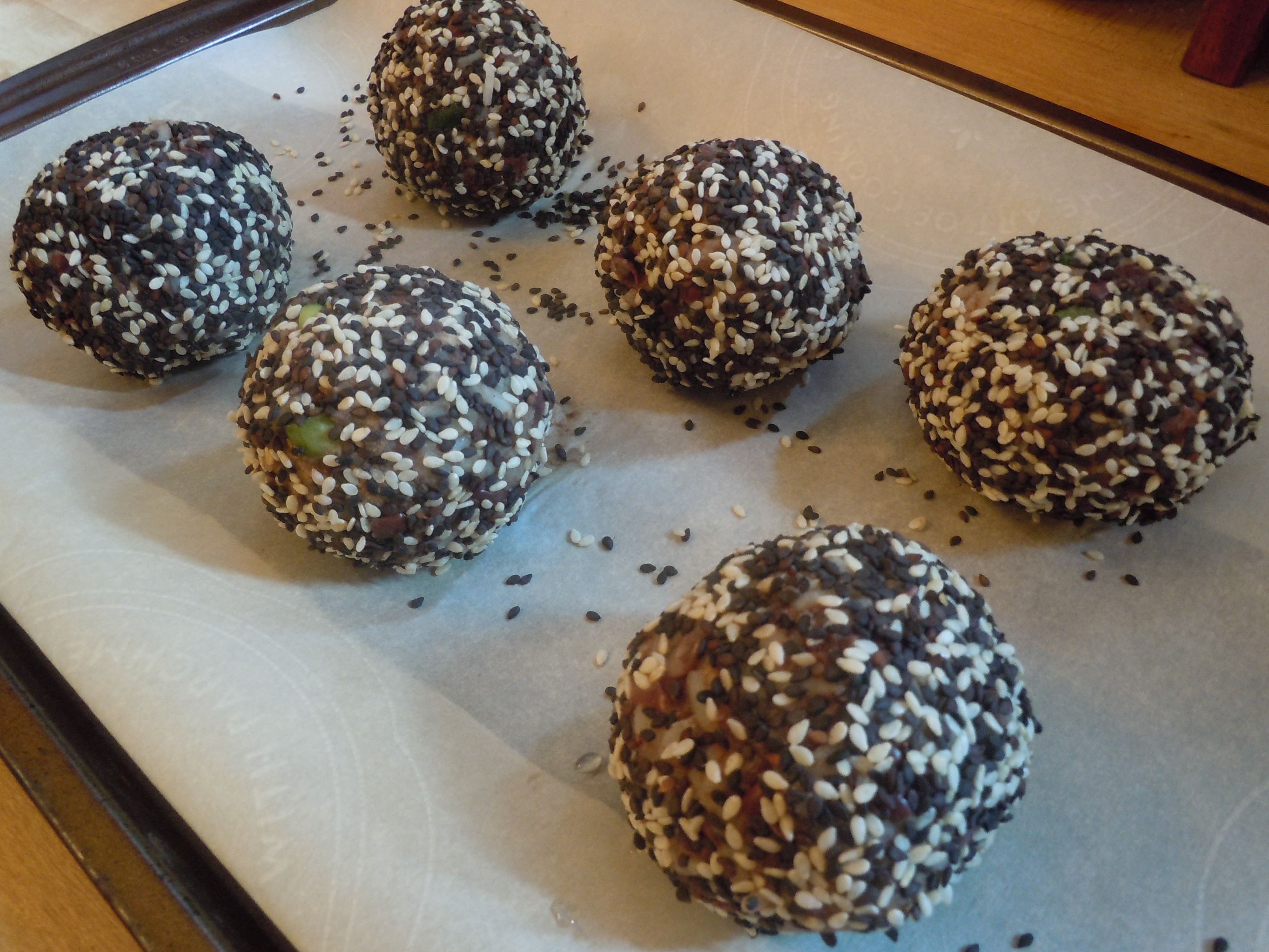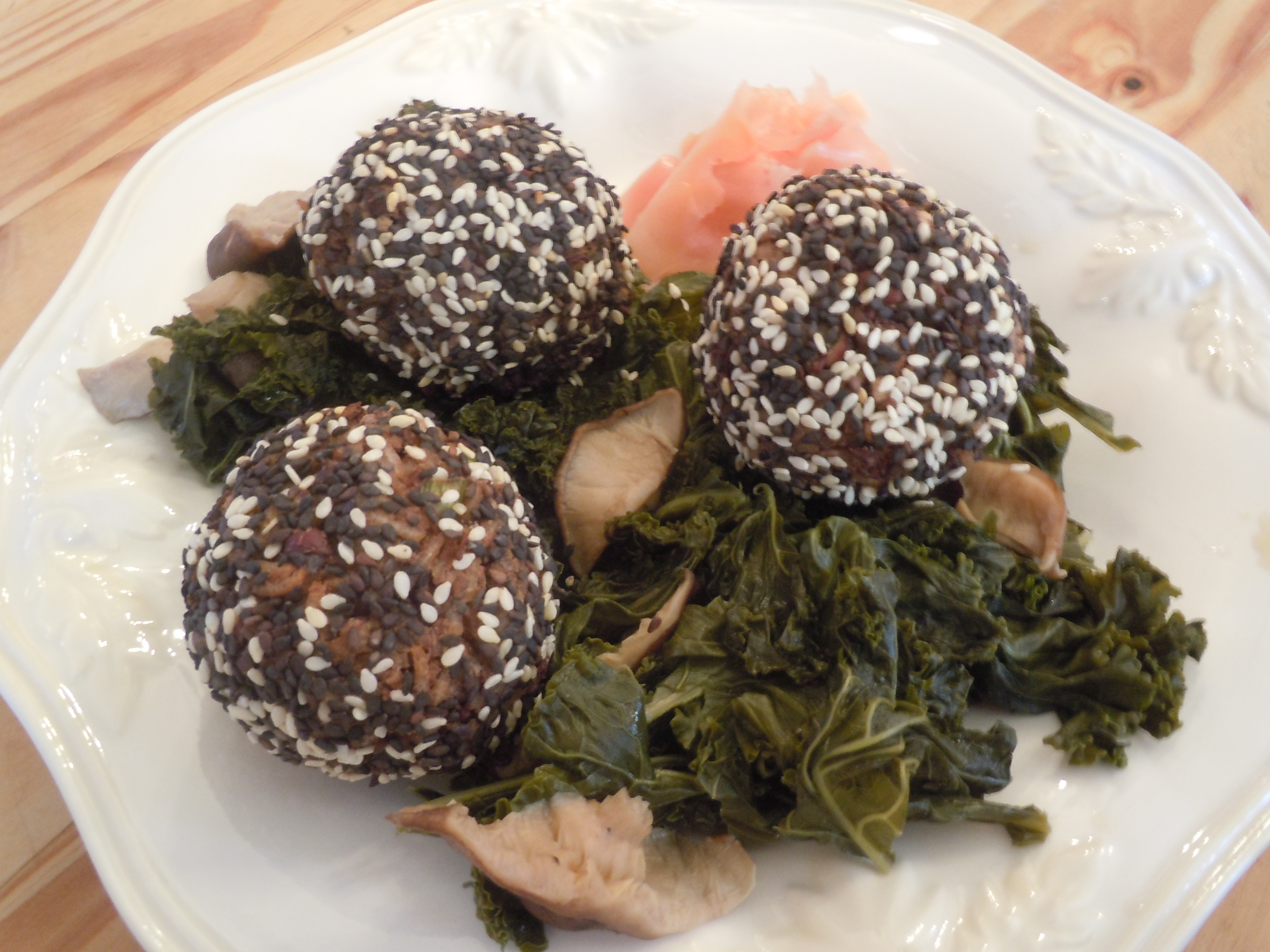 Adzuki, Sesame Rice Balls with Kale and Shitake Mushrooms