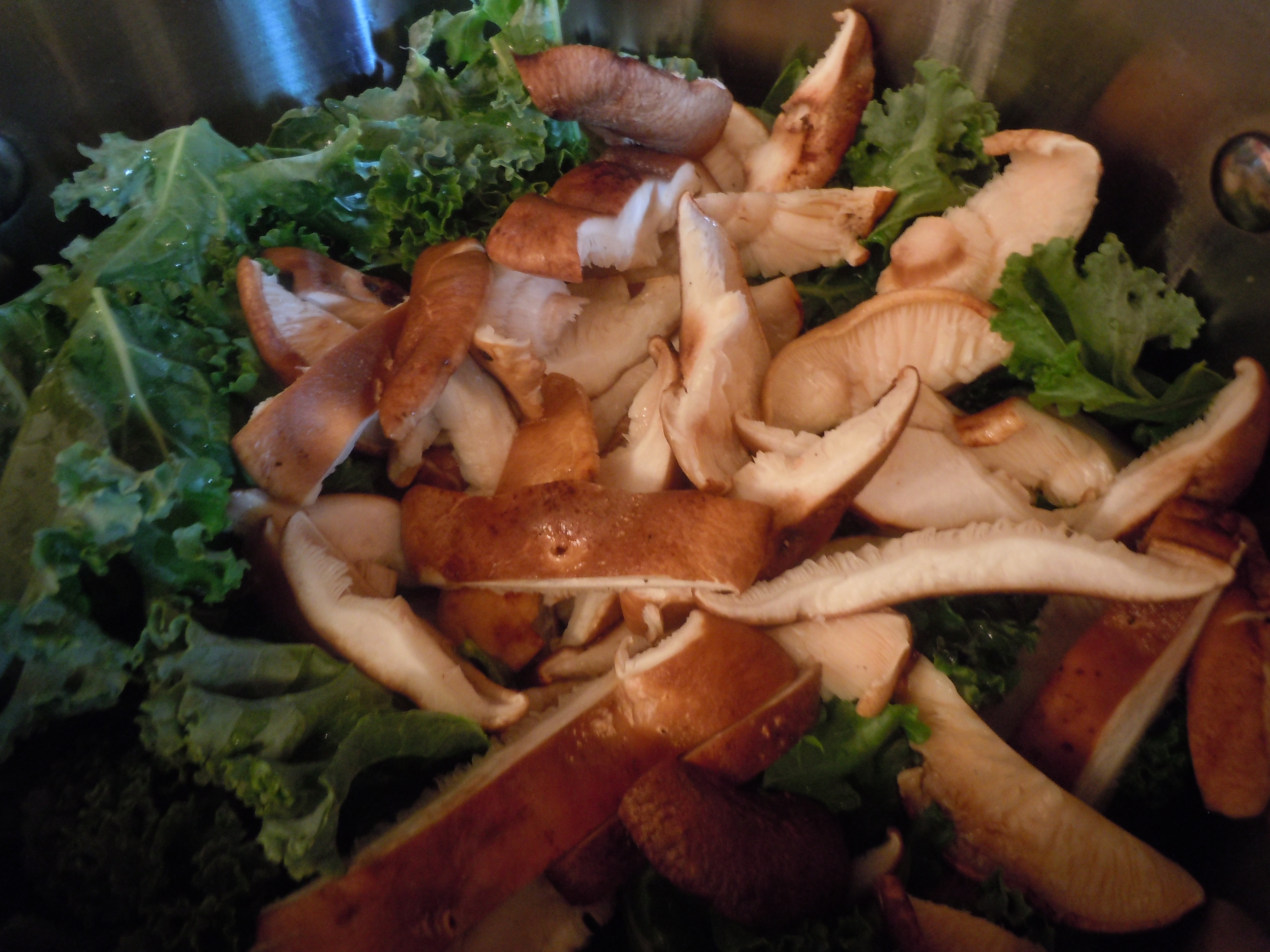 8 Cook the kale and mushrooms together in 1-2 cups of water or vegetable broth.