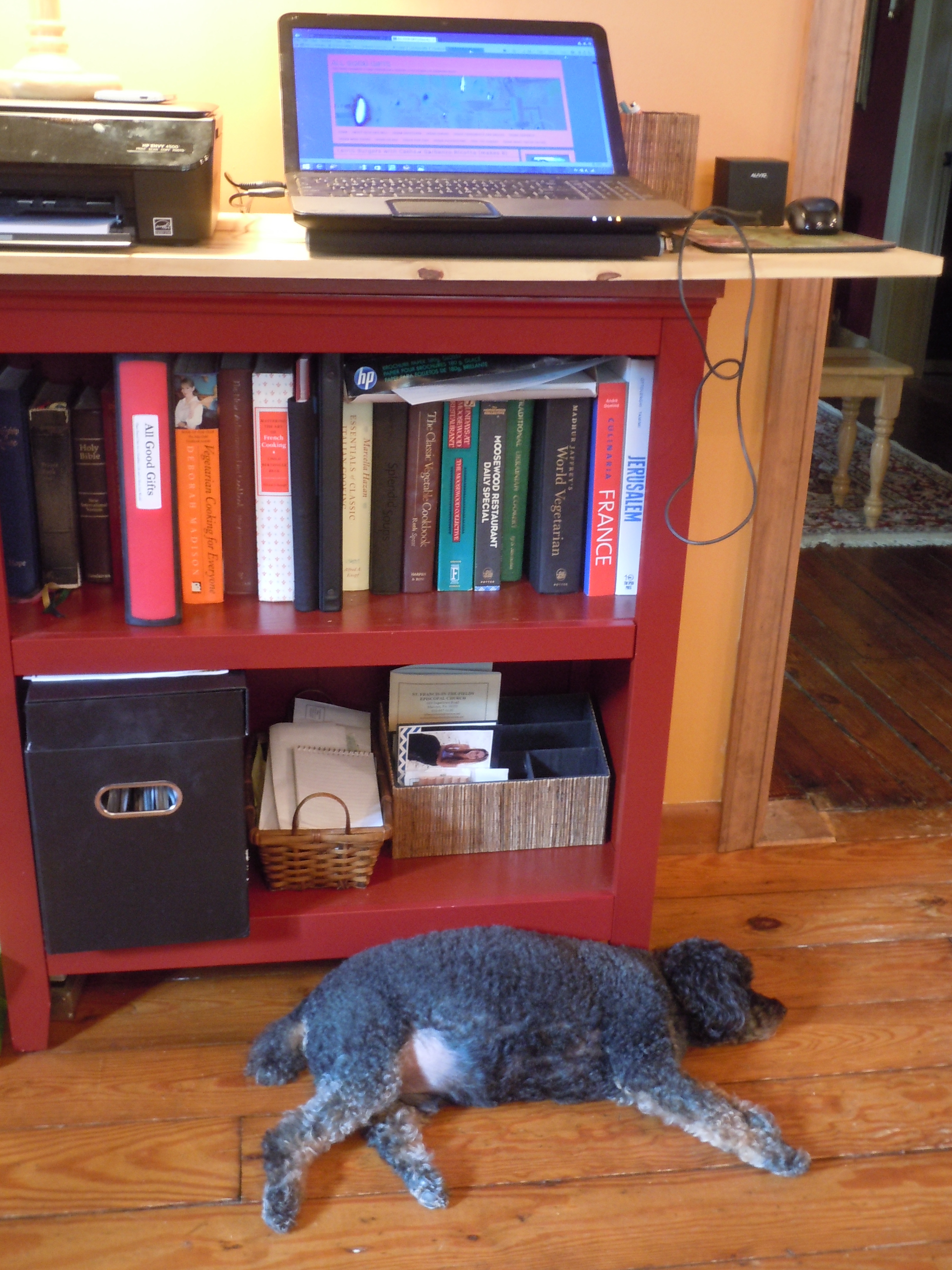 How am I supposed to get any writing done when the Schnoodle insists on lying in precisely the spot where I need to stand in order to comfortably write? I think he conducting a lie-in. He is definitely not starving so it must be some sort of non-violent protest in response to our making him a vegan.