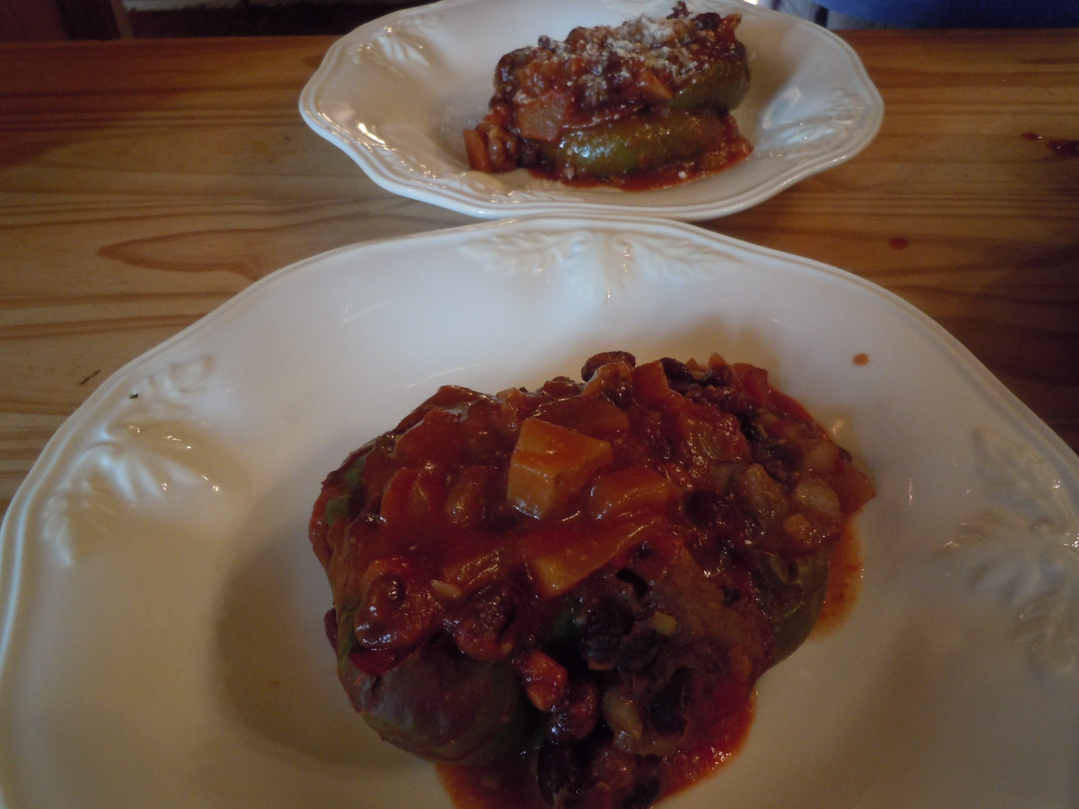 2 green bell peppers, halved and blanched