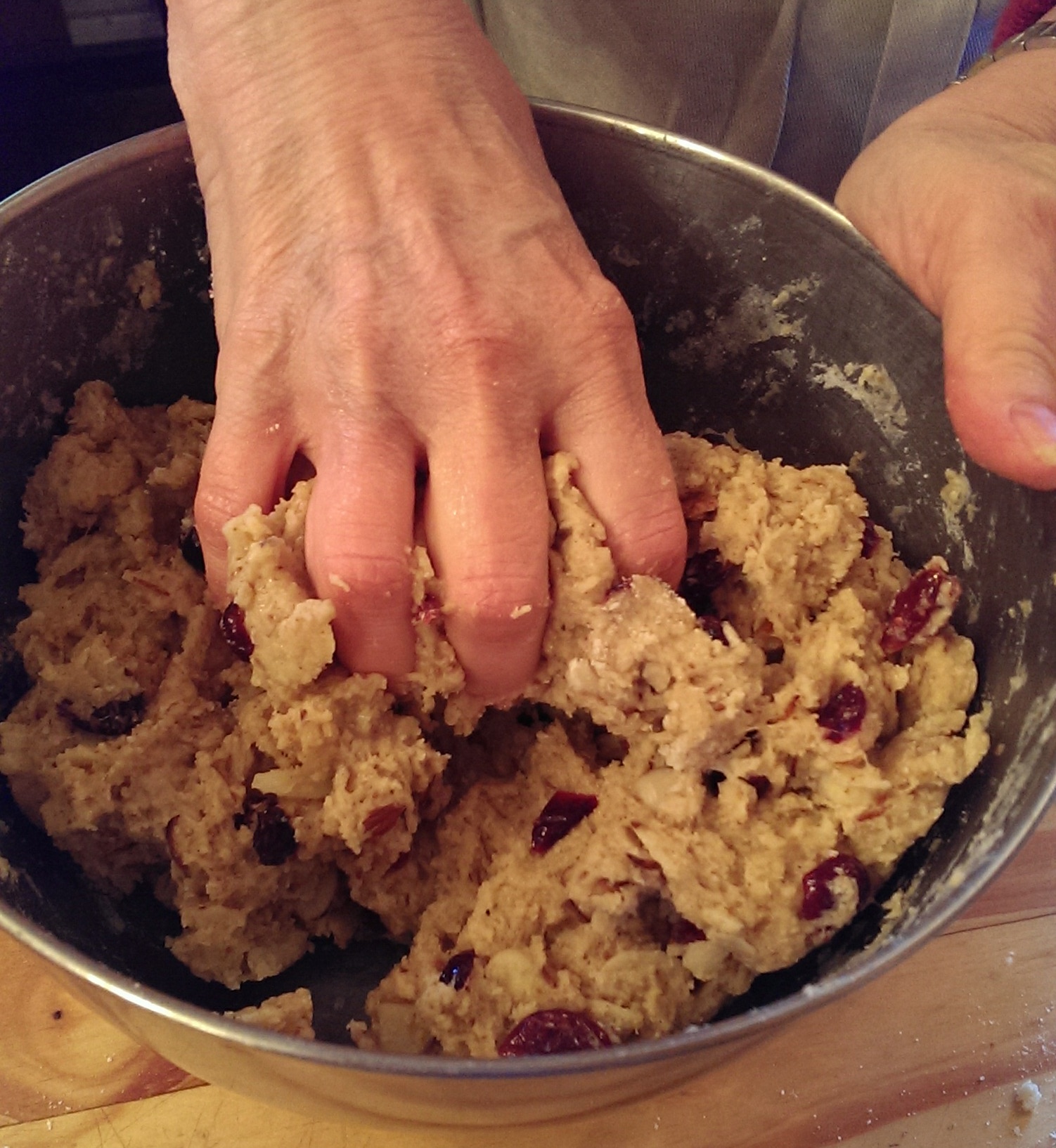 4 Combine the butter, milk, vanilla and Disaronna and add to the dry ingredients to make a firm dough