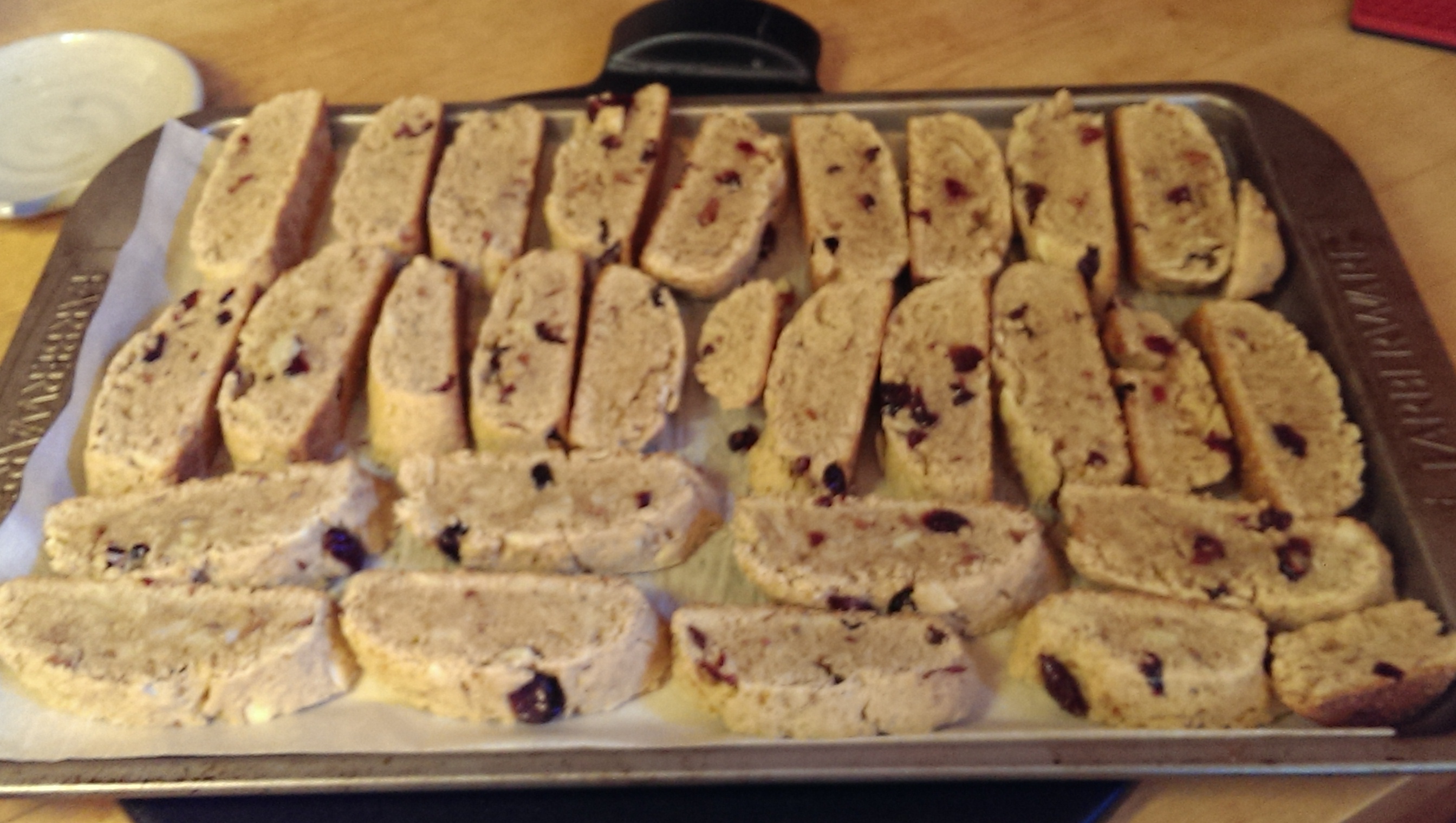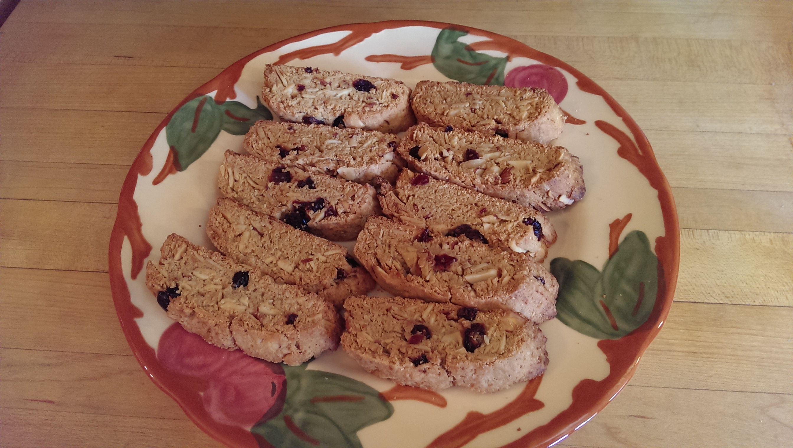 A reader on All Good Gifts once asked Glyn, “Are you sure you’re not Italian? You cook just like my Nana.” Well, so far as she knows, Glyn is not Italian, but Will is, so the inspiration must come from him! These biscotti are made with almond meal, sliced almonds and dried cranberries and are laced with Amaretto and a dash of cardamom. Try them in the morning with a latté or with a cup of espresso as an after dinner treat. ~ Glyn (AKA Mama Lorraine)