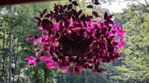 So it is not strange that one day someone would give the name “Wandering Jew” to various varieties of spreading ground cover plants. We have one such plant growing beautifully in a hanging basket on our front porch at Dayenu Cottage. In the mornings it captures the light of the rising sun in a glorious burst of purple radiance. As we finished our Mist on the Mountain shawl, it seemed a good idea to switch from a silver weft to a purple weft, and change the weaving design to a more “wandering” twill variation. So on the loom now is the completed “Mist on the Mountain,” and the newly begun “Wandering Jew.” Please contact us for pricing, or for other orders.